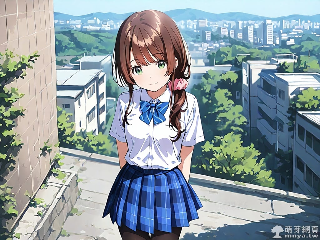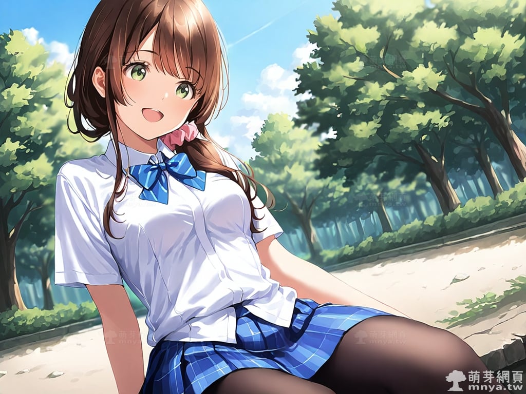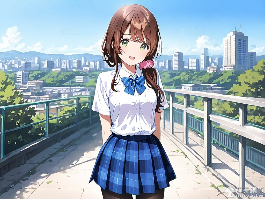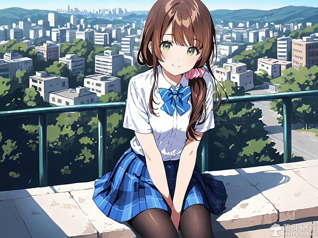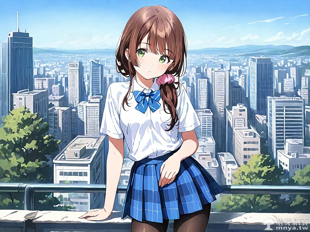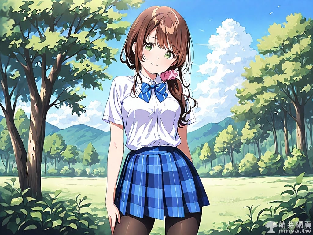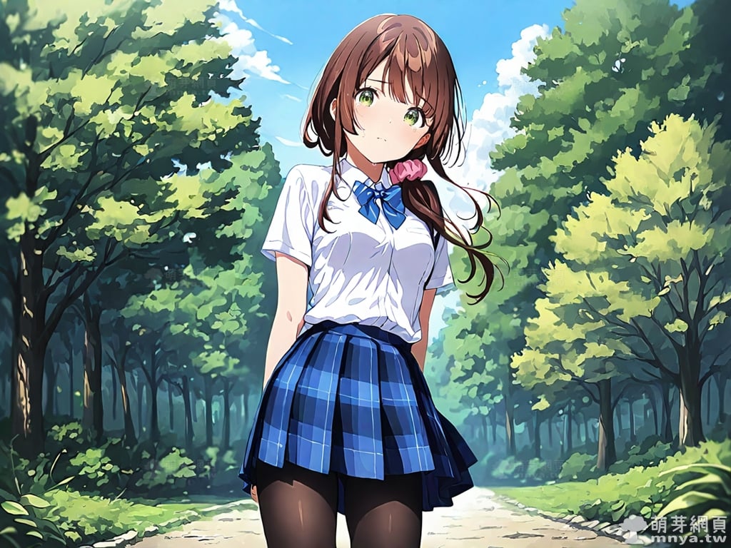提詞文字:(masterpiece), (high quality), (high score), (great score), (year 2020), (kawaii), (loli), (photorealistic:0.1), 1girl, solo, (uchida yua), __posture__, long hair, brown hair, hair scrunchie, pink scrunchie, scrunchie, hair over shoulder, green eyes, shirt, pantyhose, white shirt, school uniform, short sleeves, blue skirt, pleated skirt, collared shirt, skirt, black pantyhose, bow, plaid, bangs, plaid skirt, striped bowtie, bowtie, blue bowtie, blue bow, dress shirt, medium breasts, breasts, cowboy shot, __looking__, __expression__, __background__. <lora:uchida_yua_XL:1>
