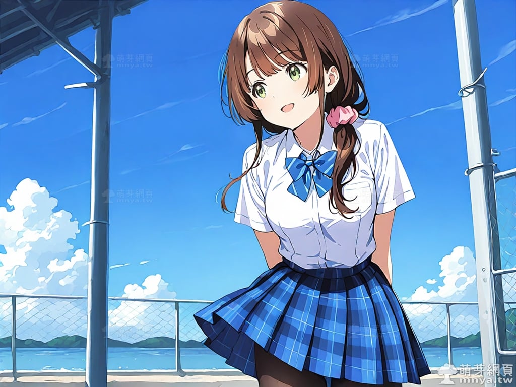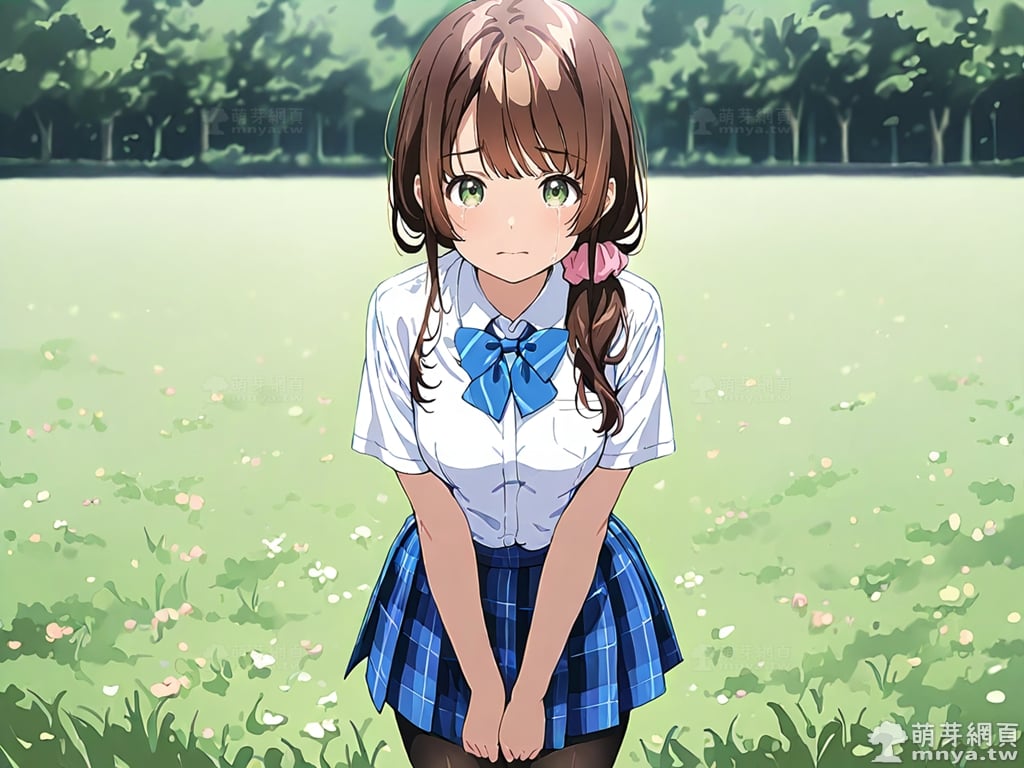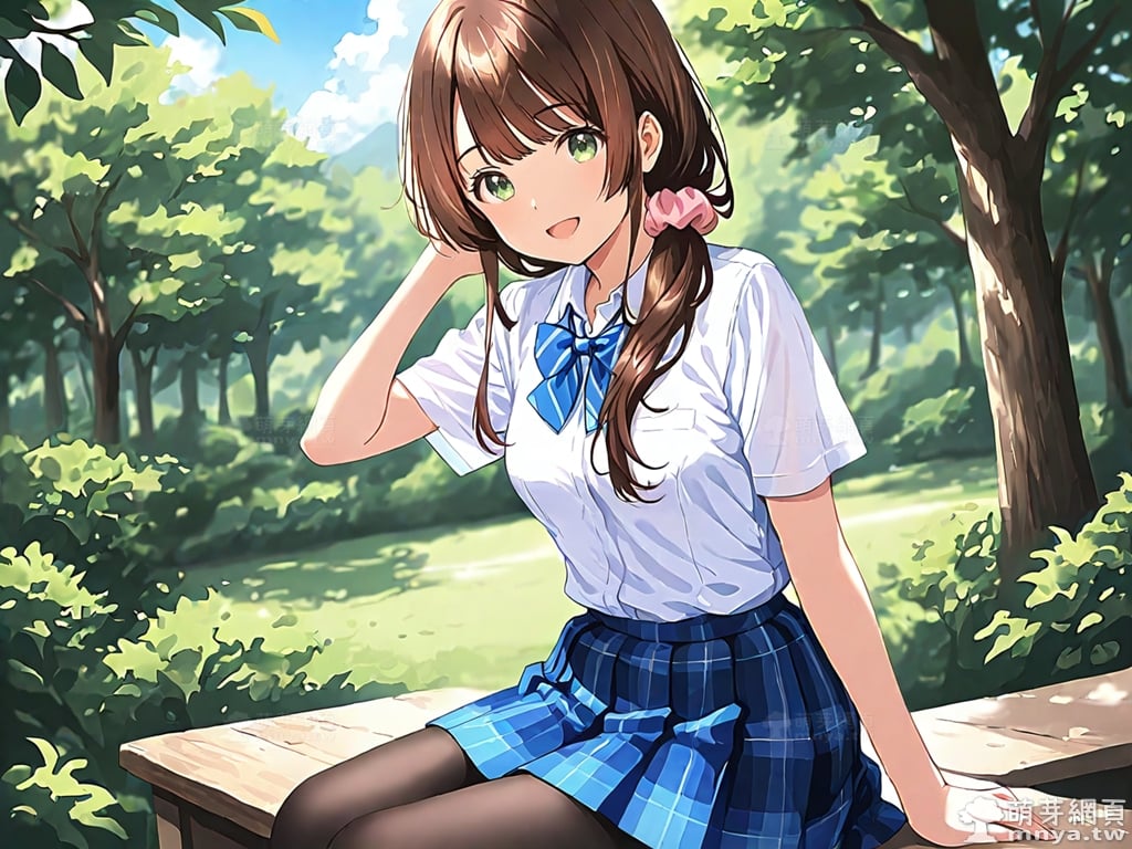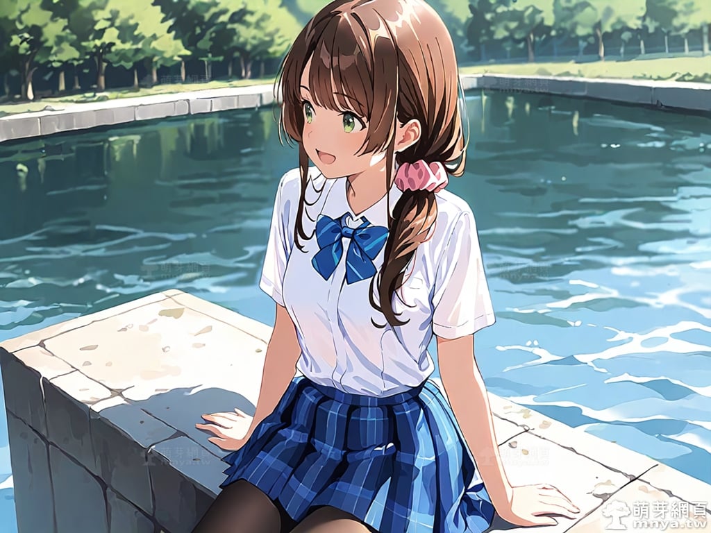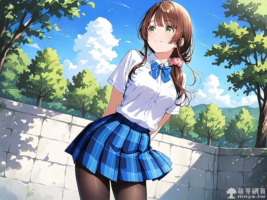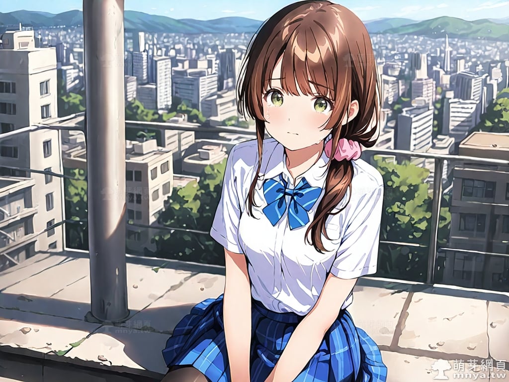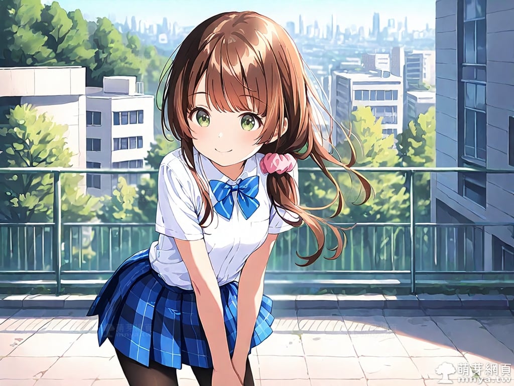 提詞文字:(masterpiece), (high quality), (high score), (great score), (year 2020), (kawaii), (loli), (photorealistic:0.1), 1girl, solo, (uchida yua), __posture__, long hair, brown hair, hair scrunchie, pink scrunchie, scrunchie, hair over shoulder, green eyes, shirt, pantyhose, white shirt, school uniform, short sleeves, blue skirt, pleated skirt, collared shirt, skirt, black pantyhose, bow, plaid, bangs, plaid skirt, striped bowtie, bowtie, blue bowtie, blue bow, dress shirt, medium breasts, breasts, cowboy shot, __looking__, __expression__, __background__. <lora:uchida_yua_XL:1>