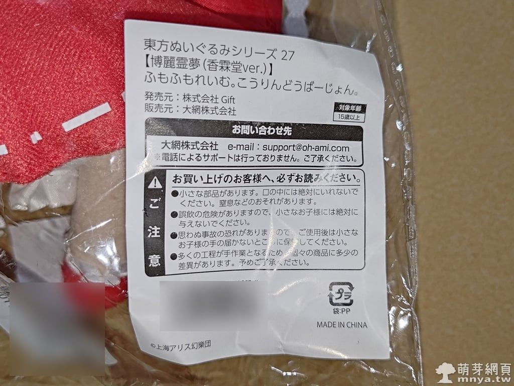 ▲ 包裝貼紙特寫,清楚印有商品名稱「博麗霊夢(香霖堂ver.)」與製造商 Gift 標示。