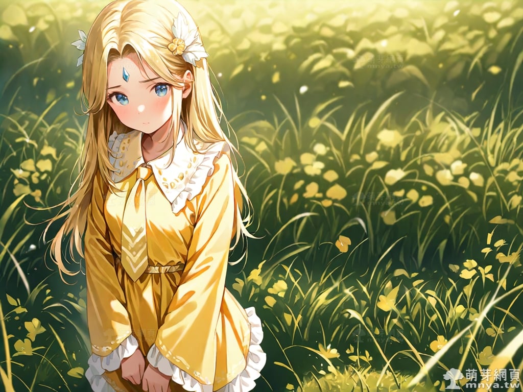 提詞文字:(masterpiece), (high quality), (high score), (great score), (year 2020), (kawaii), (loli), (photorealistic:0.1), 1girl, solo, (kikuri \(touhou\):1.2), touhou, __posture__, long hair, curtained hair, blonde hair, hair ornament, blue eyes, collared shirt, forehead jewel, frilled shirt collar, frilled sleeves, frills, long sleeves, necktie, yellow necktie, shirt, yellow shirt, dress, yellow dress, wide sleeves, medium breasts, breasts, cowboy shot, __looking__, __expression__, __background__.