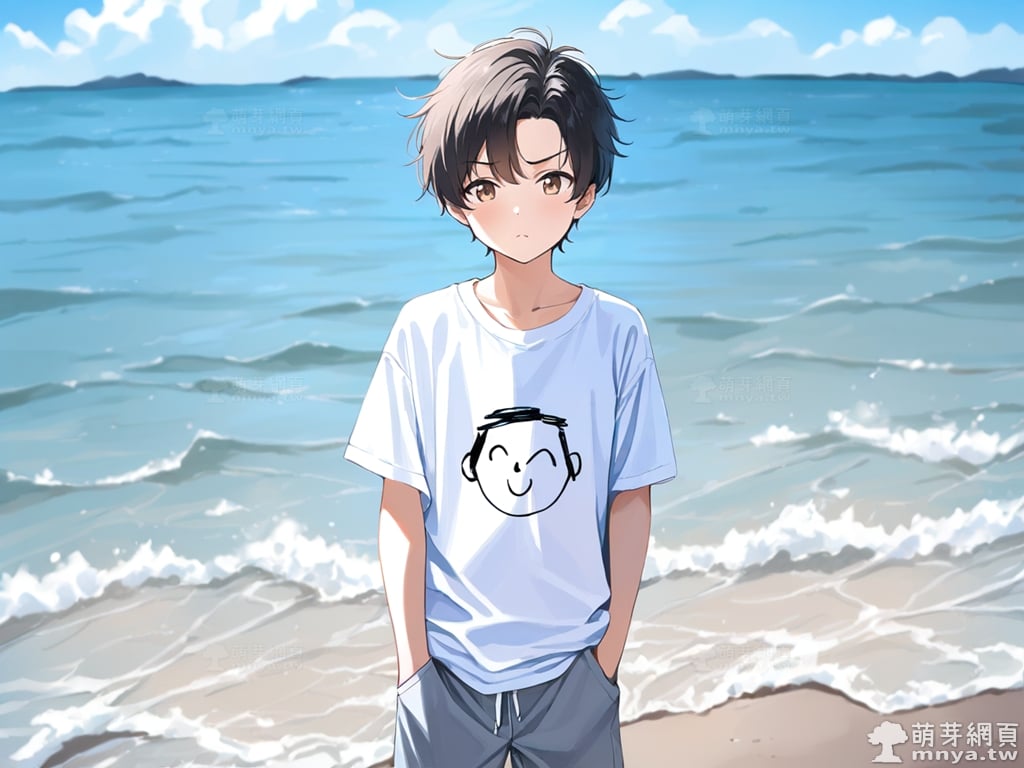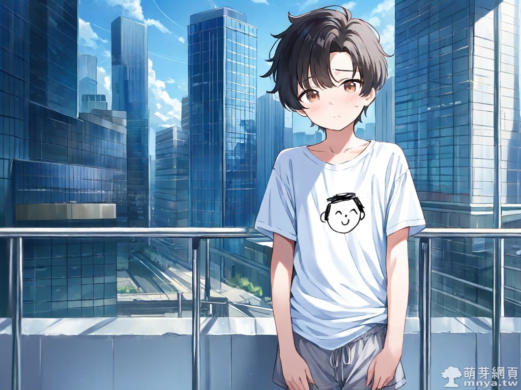 提詞文字:(masterpiece), (high quality), (high score), (great score), (year 2020), (kawaii), (loli), (photorealistic:0.1), 1boy, solo, sensei \(blue archive\), sensei \(blue archive the animation\), doodle sensei \(blue archive\), blue archive, blue archive the animation, __posture__, short hair, black hair, messy hair, hair between eyes, brown eyes, collarbone, grey shorts, shirt, shorts, t-shirt, white shirt, cowboy shot, __looking__, __expression__, __background__.