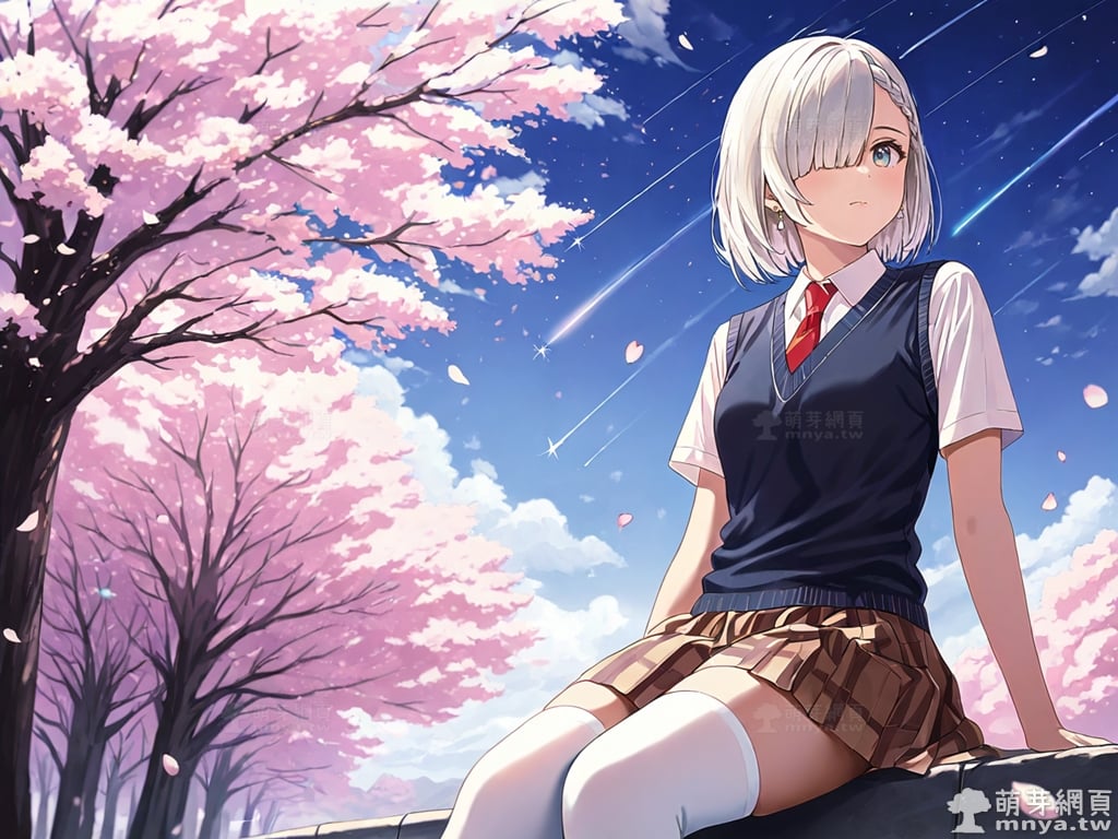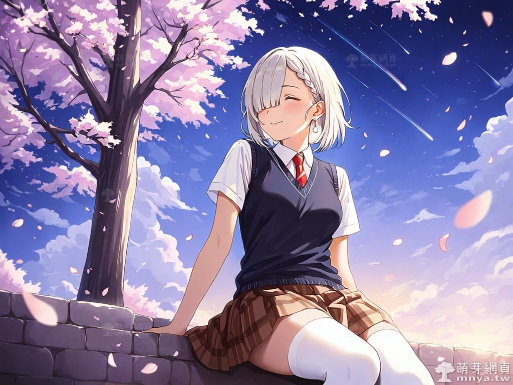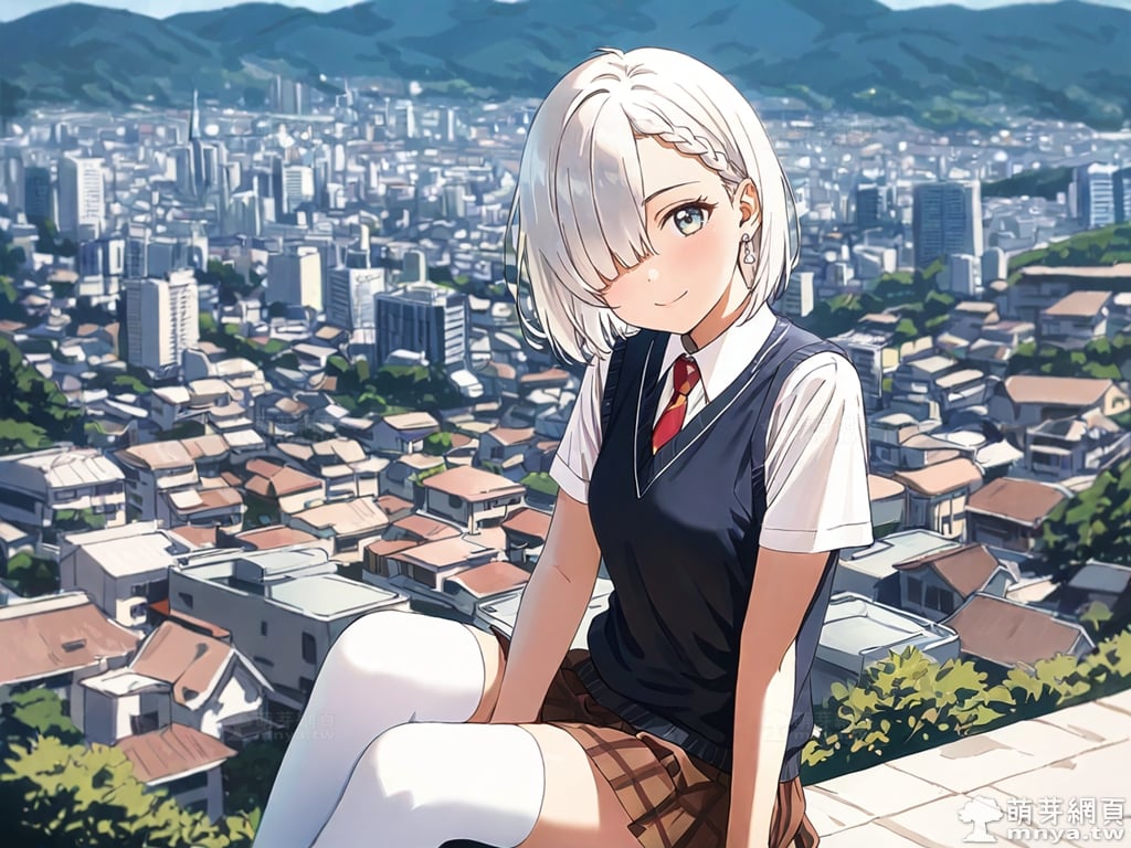 此次的目標是在「朋友的妹妹只纏著我」(友達の妹が俺にだけウザい,My Friend's Little Sister Has It In for Me!)[簡稱「妹纏」(いもウザ,ImoUza!)]登場的「月之森真白」(月ノ森 真白,Tsukinomori Mashiro),本作女主角之一,她是高中二年級生,也是明照的堂妹和青梅竹馬。在她的多重身份中,最引人注目的是她同時也是 UAZ 文庫超人氣新人職業小說家,筆名為「卷貝海參」,出道作是《白雪公主的復仇教室》。從外型上看,真白擁有一頭近乎白色的短髮,髮尾長度及肩,尤其引人注目的是她左側的髮絲被巧妙地編成一條細辮。她的右眼幾乎完全被遮蓋住,給人一種略帶內斂的神秘感,同時呼應了她起初膽小怕事的性格。她的瞳色呈現柔和的藍色,眼神溫柔而略帶羞澀。她通常穿著整齊的校服,深色的背心搭配白色襯衫和紅色領帶,下身是紅棕色格紋短裙。儘管她一開始面對明照時極度冷淡且言詞犀利,但這其實是她害羞和不知所措的表現,隨著故事發展,她在明照的幫助下逐漸打開心扉,正視自己對他的感情,並融入 5 樓同盟,同時與情敵彩羽維持著良好的友誼。使用 SDXL 模型生成,並搭配自行訓練的 SDXL 專用 LoRA 模型,效果很不錯。總共產生 200 張,挑掉不合理跟瑕疵較多的有 27 張如下提供大家參考。