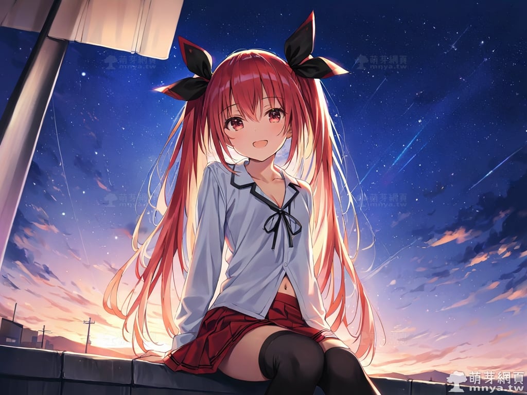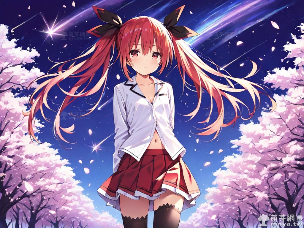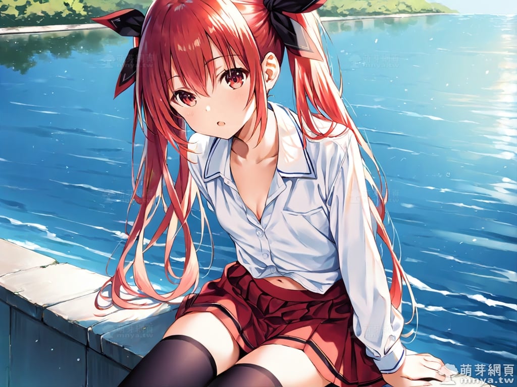 提詞文字:(masterpiece), (high quality), (high score), (great score), (year 2020), (kawaii), (loli), (photorealistic:0.1), 1girl, solo, (itsuka kotori), date a live, __posture__, long hair, red hair, twintails, black ribbon, hair ribbon, red eyes ,school uniform, white shirt, collared shirt, shirt, pleated skirt, red skirt, skirt, long sleeves, black thighhighs, thighhighs, zettai ryouiki, collarbone, cleavage, navel, small breasts, breasts, cowboy shot, __looking__, __expression__, __background__.