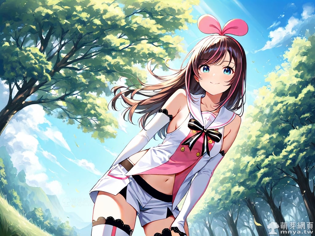 此次的目標是「絆愛」(キズナアイ,Kizuna AI),一位於 2016 年 11 月 29 日開始活動的日本虛擬 YouTuber 和音樂藝術家,所屬事務所為 Kizuna AI 株式會社,經營有 YouTube 頻道「A.I.Channel」和「A.I.Games」。她是公認的第一個虛擬 YouTuber,角色設定為獨立的人工智慧(AI),與其名字中的「愛」(羅馬拼音也是 AI)相對應,且否認中之人的存在。絆愛是位具有萌元素的二次元動漫少女,外貌大約 16 歲,身高 156 公分、體重約 46 公斤,個性活潑,有著甜美嗓音與獨特的說話方式。在外型上,她擁有一頭滑順的長髮,並搭配具未來感的粉紅色漸層染髮,頭上則綁著設計成雙葉心形樣貌、會晃動的粉紅色蝴蝶結髮箍。絆愛的瞳色是明亮且清澈的水藍色,給人活潑可愛的印象。她身穿白色無袖上衣與短褲組成的服裝,衣著帶有未來感元素,袖套和膝上襪襪口有蕾絲裝飾,膝上襪與短褲構成絕對領域,整體形象採取活潑的粉色系風格。使用 SDXL 模型直接生成,效果很不錯。總共產生 100 張,挑掉不合理跟瑕疵較多的有 5 張如下提供大家參考。
