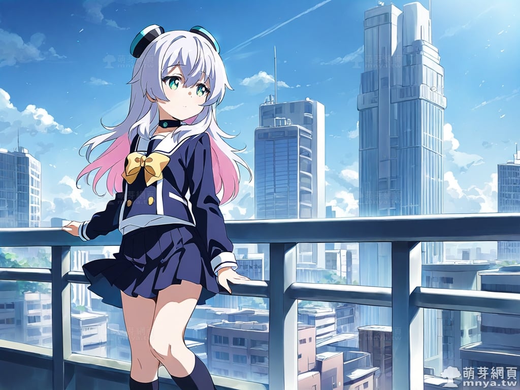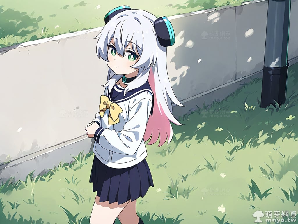 提詞文字:(masterpiece), (high quality), (high score), (great score), (year 2020), (kawaii), (loli), (photorealistic:0.1), 1girl, solo, (alma chan:1.3), __posture__, long hair, grey hair, pink hair, two-tone hair, multicolored hair, (hair ornament:1.2), (smokestack hair ornament:1.5), sidelocks, bangs, hair between eyes, aqua eyes, green eyes, bright pupils, expressionless, skirt, socks, (school uniform), yellow bowtie, bowtie, yellow bow, bow, loafers, brown footwear, black socks, kneehighs, long sleeves, black skirt, pleated skirt, black choker, choker, small breasts, breasts, cowboy shot, __looking__, __expression__, __background__. <lora:alma_chan_XL:1.3>