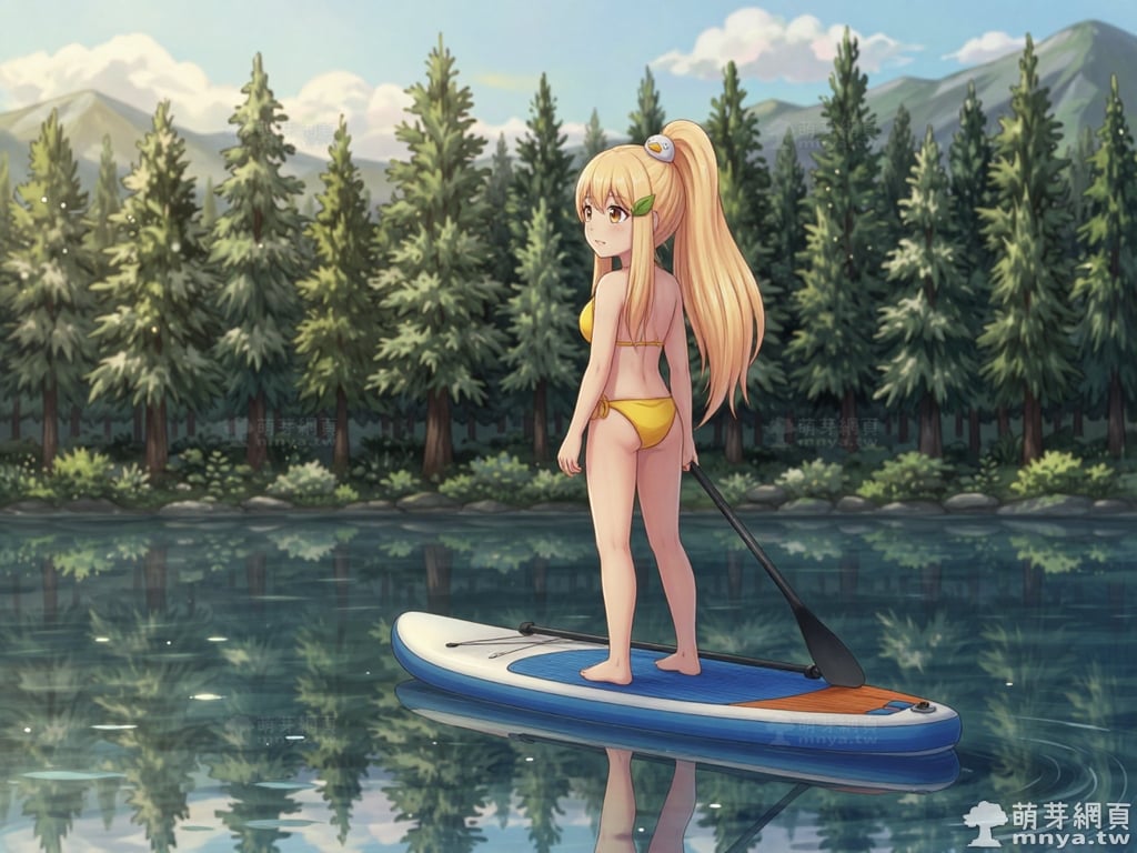 方塊鴨娘(Block Duck Niang)是「萌芽系列網站」的看板娘之一,生日為 2015 年 8 月 26 日。她擁有一頭如陽光般耀眼的橘金長髮,高高束起的馬尾隨著步伐輕快擺動,顯得活力十足。最吸睛的莫過於髮梢上那隻圓潤的白色小鳥髮飾,與清新的綠葉髮夾相映成趣,讓她在俐落的氣質中透出一絲俏皮的自然氣息。身為「方塊鴨之家」的管理者,她身穿深藍色系校園制服,鮮黃領帶在胸前點綴出亮眼色彩。她以一雙澄澈的棕色眸子溫柔守望著每一隻小方塊鴨,用無盡的耐心與愛心悉心養育牠們。使用 Z-Image-Turbo 模型生成,並搭配自行訓練的 Z-Image-Turbo 專用 LoRA 模型,效果很不錯。第三彈主題是比基尼,少女要在水邊、水上或水下展開什麼樣的冒險呢?總共產生 200 張,挑掉不合理跟瑕疵較多的有 12 張如下提供大家參考。
