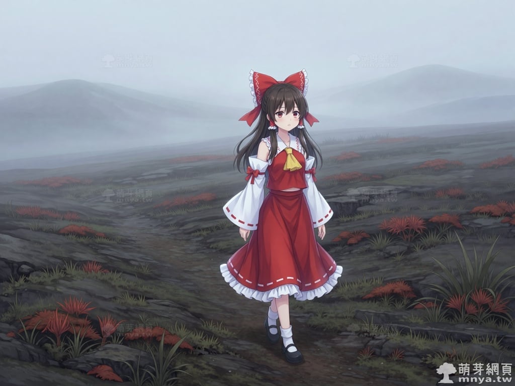 提詞文字:masterpiece, high quality, anime, (hakurei_reimu_z:2), long hair, brown hair, hime cut, sidelocks, red eyes, hair bow, red bow, frilled bow, hair tubes, frilled hair tubes, miko, red shirt, yellow ascot, detached sleeves, white sleeves, wide sleeves, puffy sleeves, red skirt, frilled skirt, socks, white socks, black shoes, mary janes, __1000promptspro__. <lora:hakurei_reimu_z_000001800>
