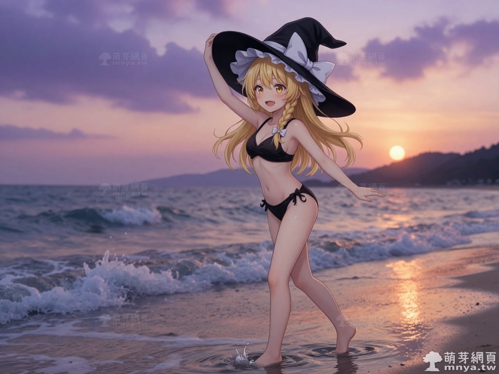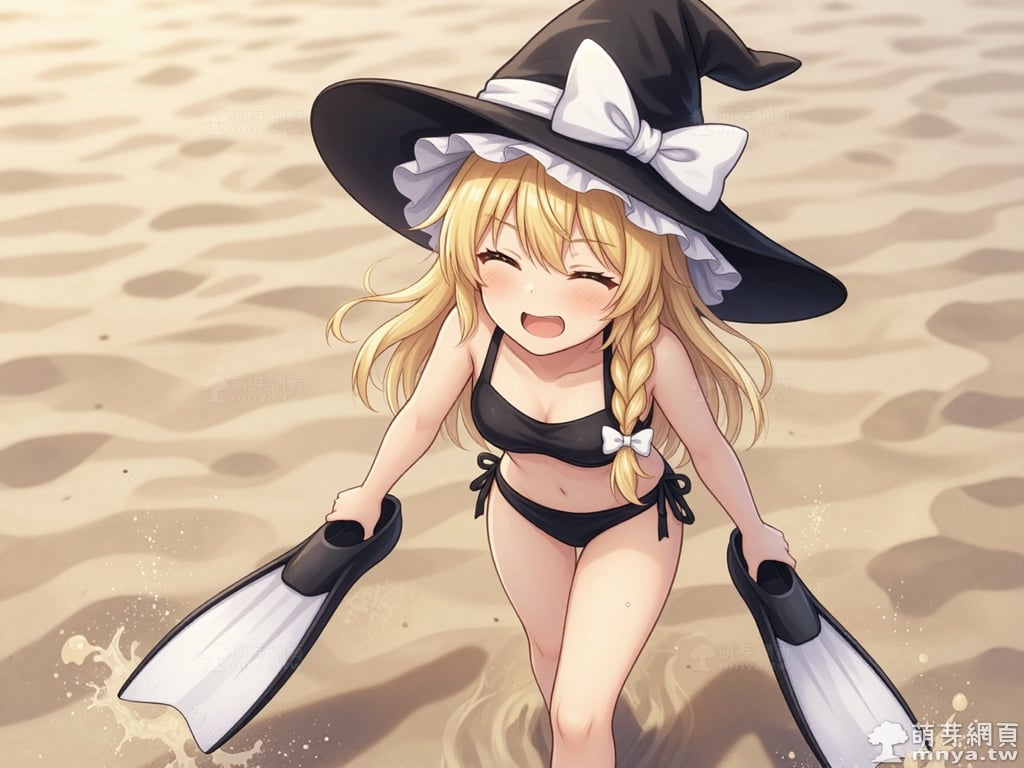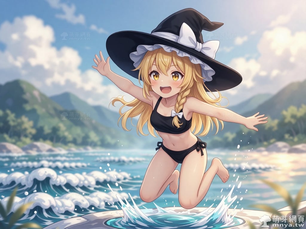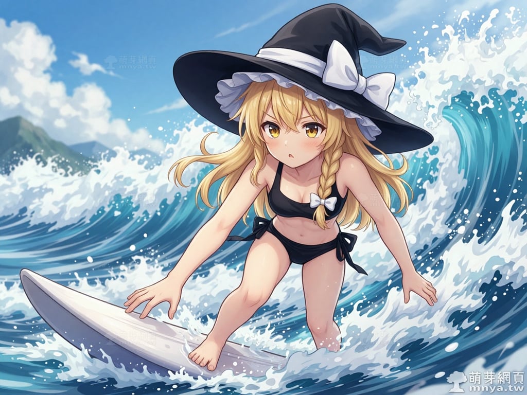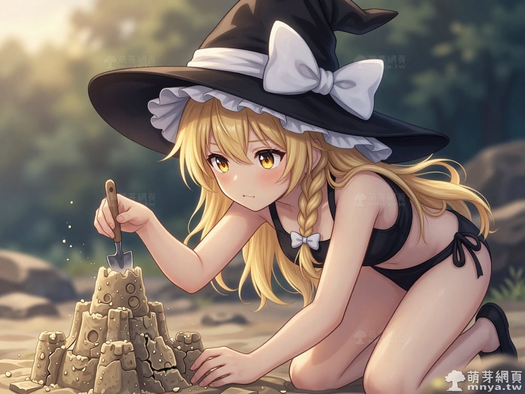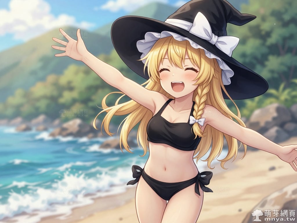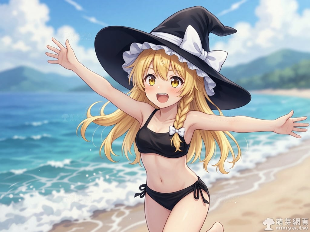 東方Project角色 AI 圖畫第兩百三十五彈,此次的目標是「東方Project系列」初次登場的「霧雨魔理沙」(霧雨 魔理沙,Kirisame Marisa),除了博麗靈夢之外另一位重要的主角,也是系列 STG 遊戲(Windows 整數作)的慣例遊戲圖標。她是一位獨居於人跡罕至的魔法之森的人類魔法使,經營著「霧雨魔法店」作為她的住家與工作場所。有著一頭金色的長髮,並將部分頭髮編成麻花辮垂在胸前,搭配一雙閃耀著琥珀色光芒的金瞳。外型是典型的西洋女巫形象,總是戴著一頂綴有巨大白色蝴蝶結的寬沿魔法帽,身穿綴有金色紐扣的黑色背心,內搭白色泡泡袖上衣與白色短裙,腳上則穿著白色長襪與黑色長靴。性格上與靈夢形成了鮮明對比,她非常努力且認真,默默地修行,懷著超越靈夢的抱負。她熱衷於收集各種東西,但從不整理,導致房間髒亂得像一座小型的魔法之森。她的符卡多以星、光或宇宙等相關事物為主題,招牌的「戀符」系列正是其能力的展現。使用 Z-Image-Turbo 模型生成,並搭配自行訓練的 Z-Image-Turbo 專用 LoRA 模型,效果很不錯。第三彈主題是比基尼,少女要在水邊、水上或水下展開什麼樣的冒險呢?總共產生 200 張,挑掉不合理跟瑕疵較多的有 44 張如下提供大家參考。