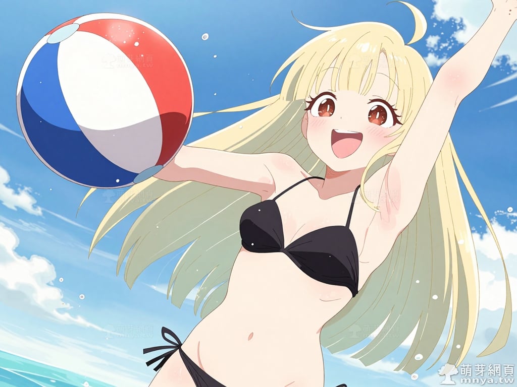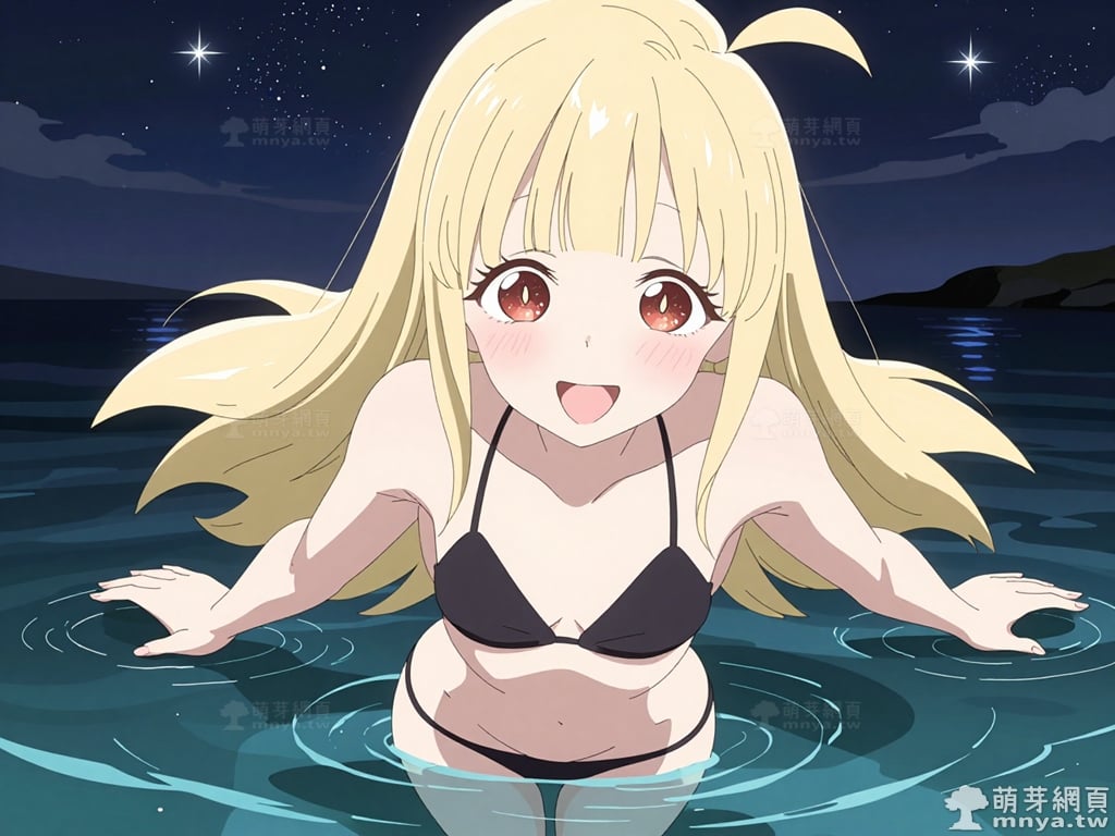 此次的目標是在「超時空輝耀姬!」(超かぐや姫!,Cosmic Princess Kaguya!)登場的「輝耀」(かぐや,Kaguya)是一位來自月球的神祕少女,因厭倦了枯燥乏味的月宮社畜生活,毅然決定「罷工」降臨地球,尋找生命中的純粹愉悅。她擁有一頭如月光般璀璨的金色長髮,髮絲筆直地垂墜至腰際,額前的平瀏海與俏皮的單根呆毛,完美襯托出那雙充滿好奇心的深紅眼眸。在虛擬空間「月讀」中,輝耀化身為活力十足的直播主,以奔放且不按牌理出牌的性格俘獲眾多粉絲。比起一成不變的月球,她更熱愛充滿變數的地球生活,以及她最珍視的夥伴彩葉。這位超時空的輝耀姬,正以古靈精怪的姿態在虛擬與現實交界處綻放光芒,用她那感染力極強的笑容,向世人宣告她追求自由與享樂的決心,留下一段既神祕又充滿生命力的都市傳說。使用 Z-Image-Turbo 模型生成,並搭配自行訓練的 Z-Image-Turbo 專用 LoRA 模型,效果很不錯。第三彈主題是比基尼,少女要在水邊、水上或水下展開什麼樣的冒險呢?總共產生 200 張,挑掉不合理跟瑕疵較多的有 12 張如下提供大家參考。
