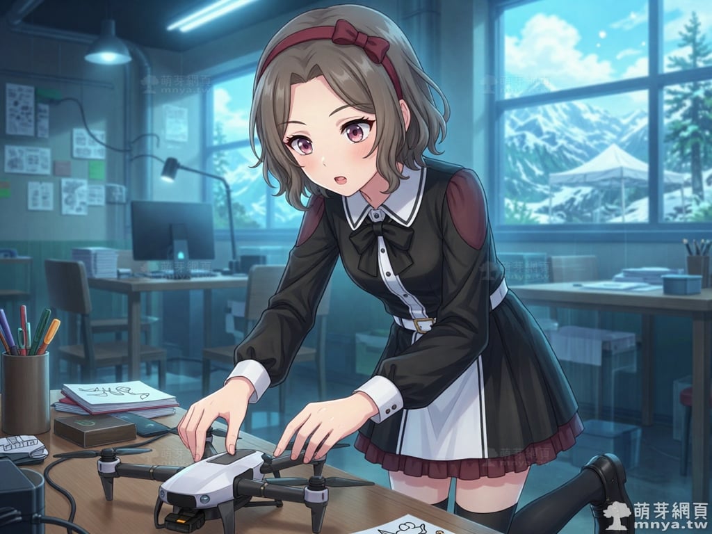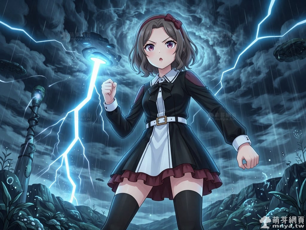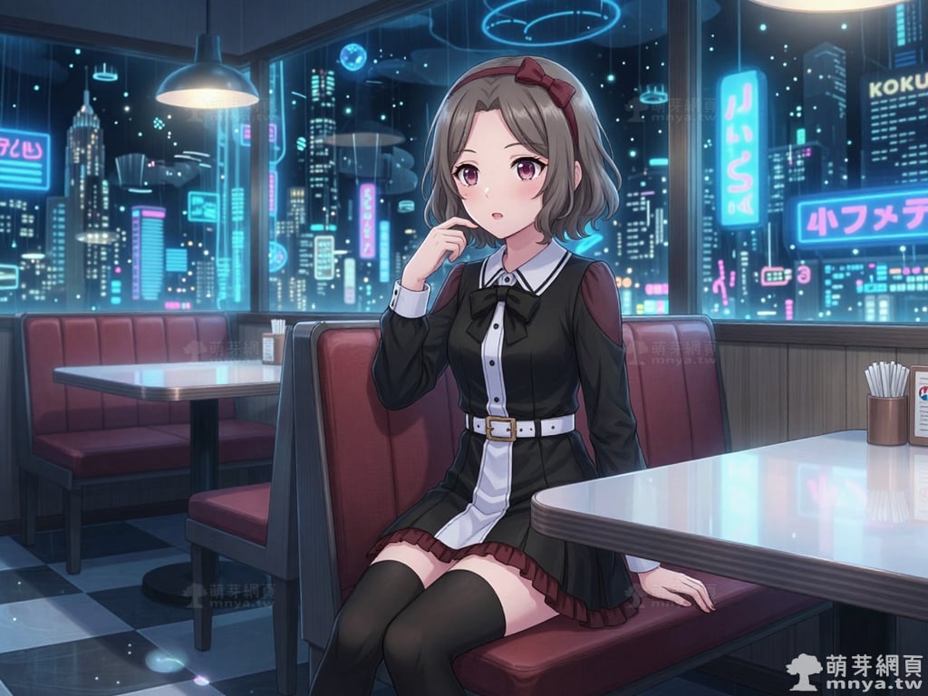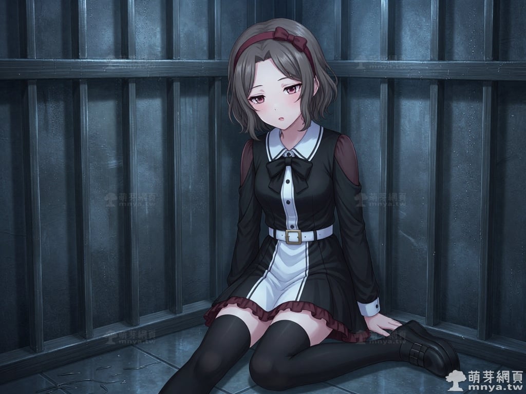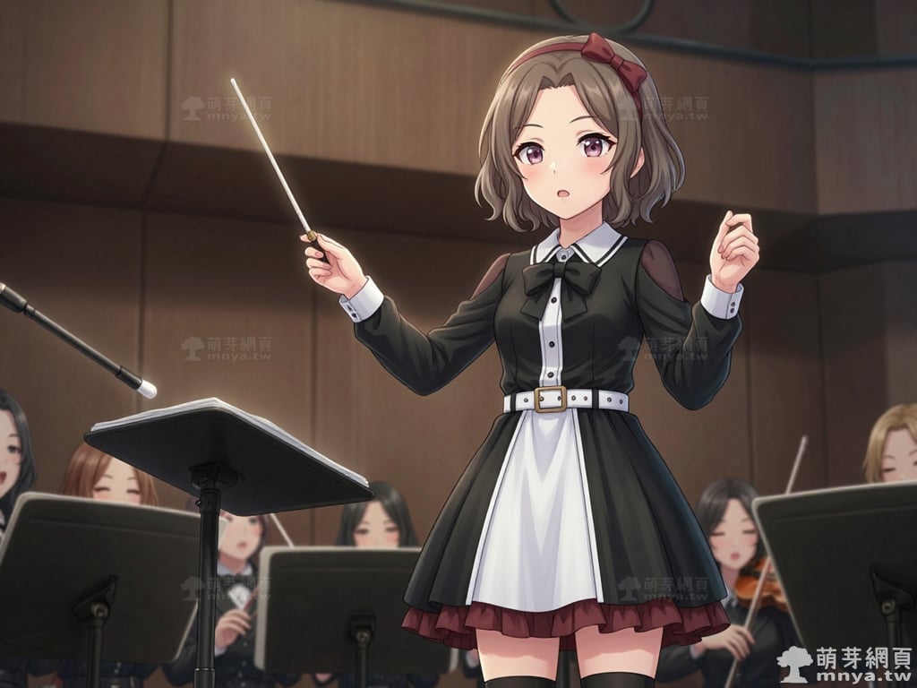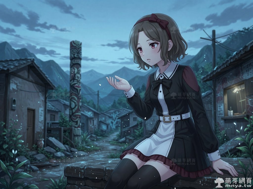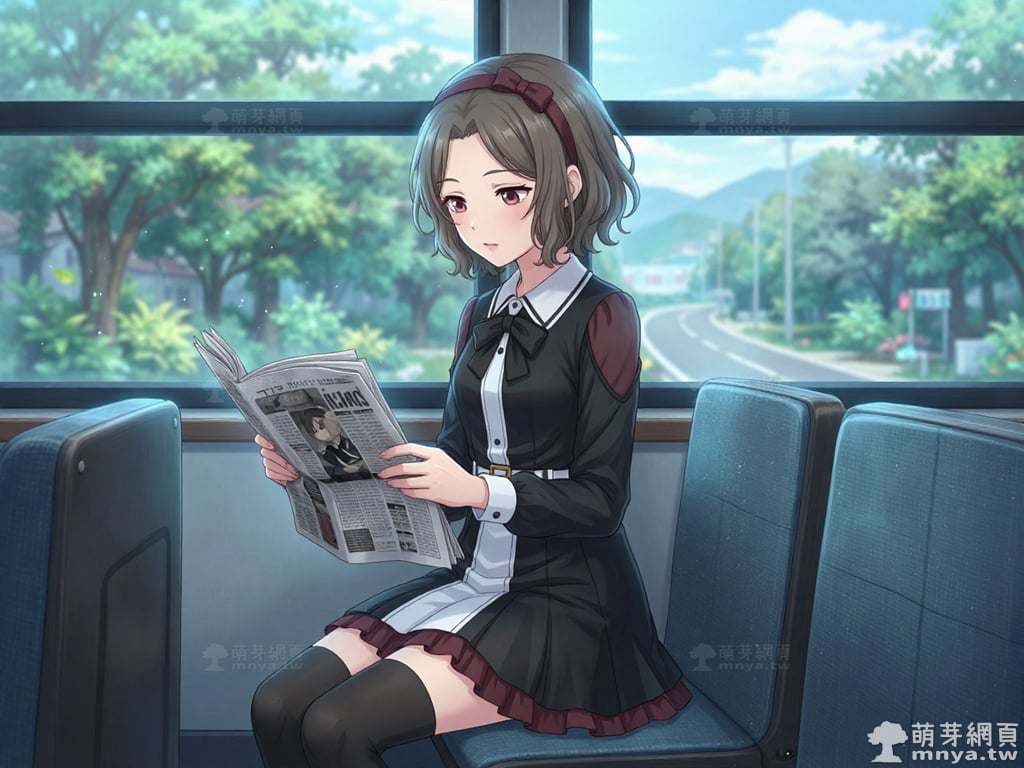 提詞文字:masterpiece, high quality, anime, (ebizuka_tomo_z:2), short wavy brown hair, parted bangs, red eyes, red hairband with a right side red bow, black long-sleeved collared dress, short dress, white collar, white cuffs, upper sleeves feature semi-transparent maroon mesh panels just below the shoulders, white button-up front panel with black buttons, black bowtie, white belt, gold buckle, maroon frilled ruffle at the hem, zettai ryouiki, black thighhighs, black platform loafers with chunky soles, __1000prompts__. <lora:ebizuka_tomo_z_000001800>