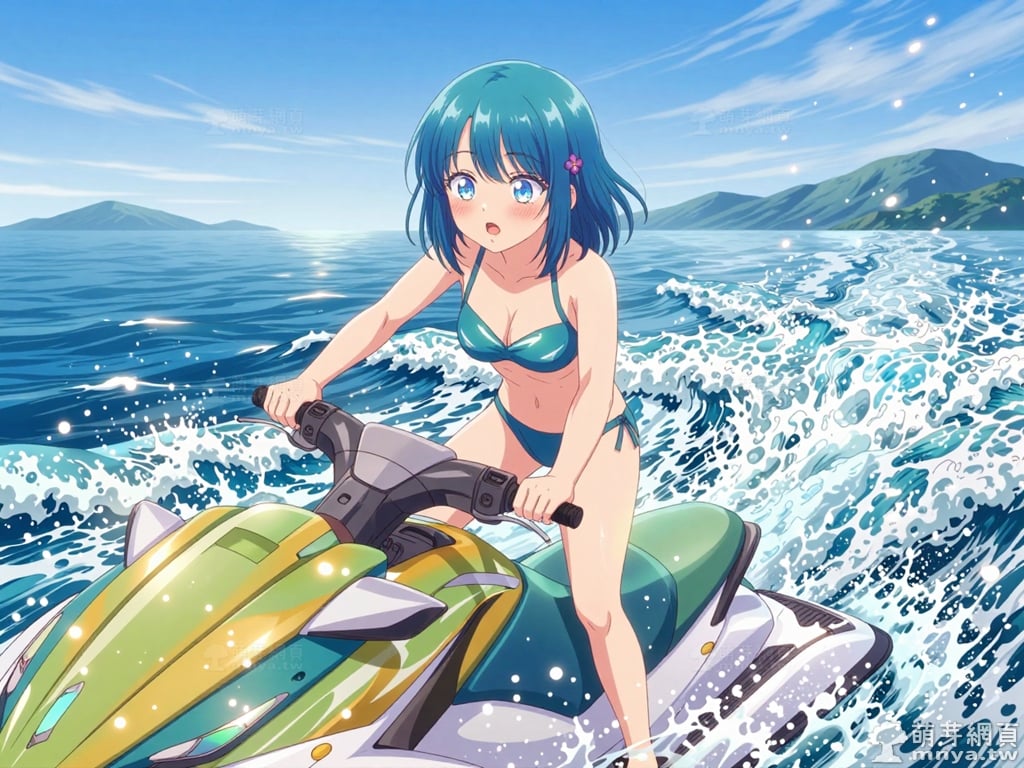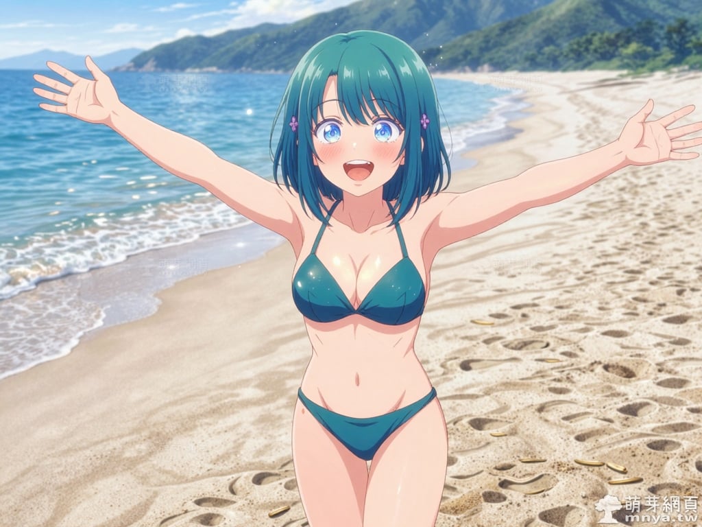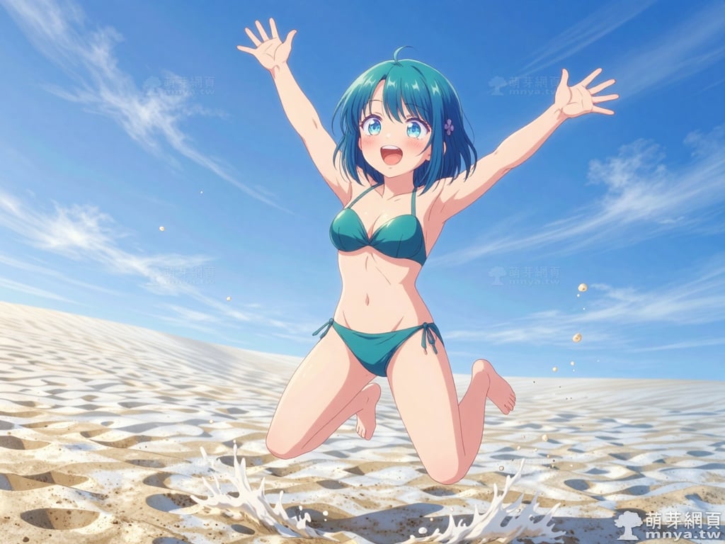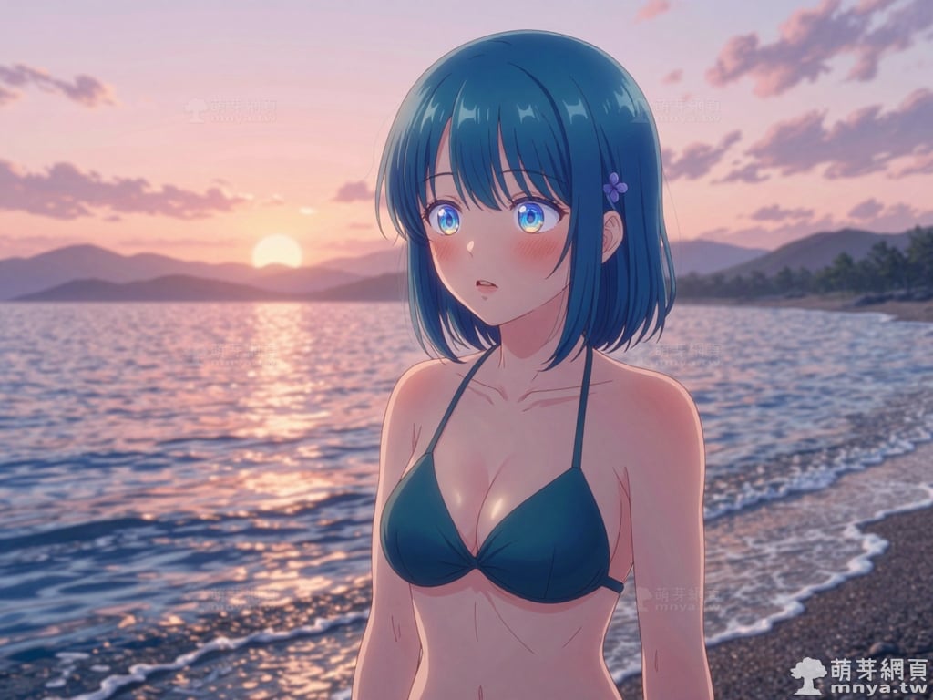 此次的目標是在「青梅竹馬的戀愛喜劇無法成立」(幼馴染とはラブコメにならない,You Can't Be in a Rom-Com with Your Childhood Friends!)登場的「水萌汐」(水萌 汐,Minamo Shio),水萌汐是那位打破鄰里界線、充滿活力的存在。她擁有一頭如深海般澄澈的藍色波波頭,髮側別著標誌性的紫色四瓣花髮圈,搭配精緻的鮭魚粉雙排扣制服與深紅褶裙,散發著校園偶像般的亮眼魅力。身為主角世之介的鄰居,她常無視常規,輕巧地從窗戶溜進對方房內,將「青梅竹馬」的親暱展現得淋漓盡致。儘管在學校人氣極高,小汐在世之介面前卻毫無防備。她熱烈地嘗試各種「攻勢」,渴望擺脫「好兄弟」的標籤,晉升為真正的戀人;然而,她那過於大膽且不設防的態度,反而常讓對方退避三舍。當她察覺好友灯也對世之介抱有好感時,內心的焦慮讓這段關係更顯波折。有趣的是,這位美少女困擾於暈車,而神奇的「可樂」便是她維持元氣的祕訣。她正努力跨越那道無形的門檻,用最真摯的溫度,敲開通往戀情的心門。使用 Z-Image-Turbo 模型生成,並搭配自行訓練的 Z-Image-Turbo 專用 LoRA 模型,效果很不錯。第三彈主題是比基尼,少女要在水邊、水上或水下展開什麼樣的冒險呢?總共產生 200 張,挑掉不合理跟瑕疵較多的有 12 張如下提供大家參考。