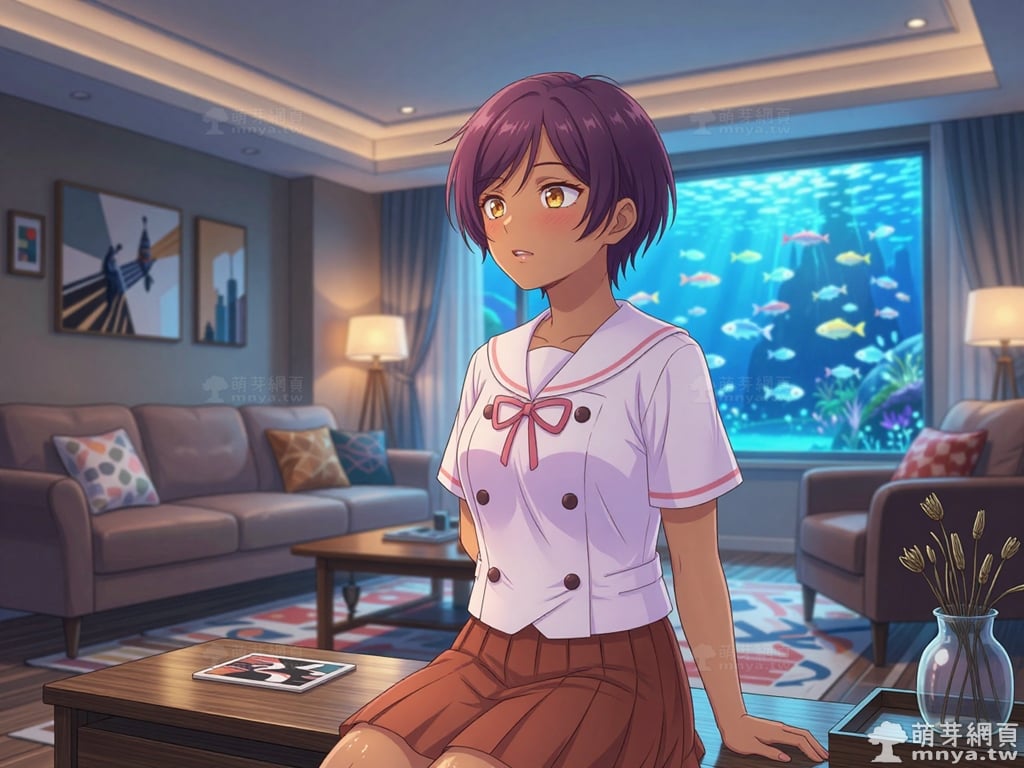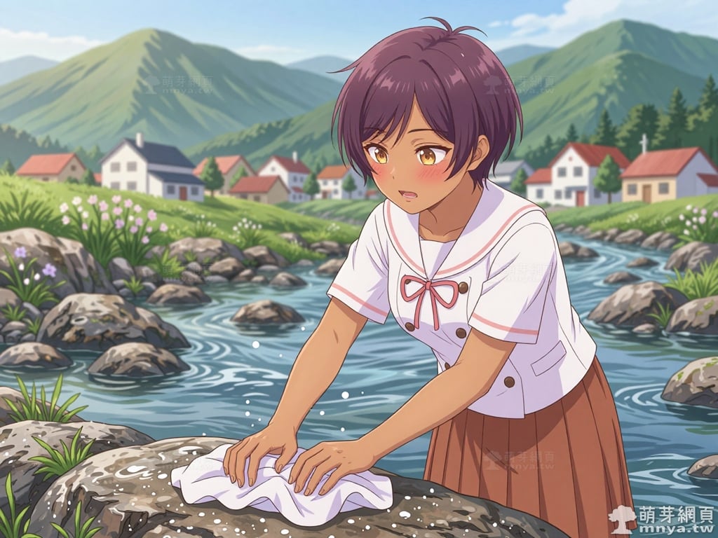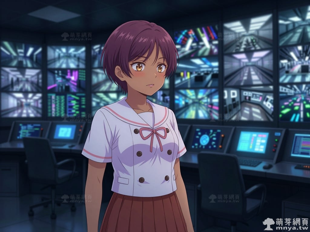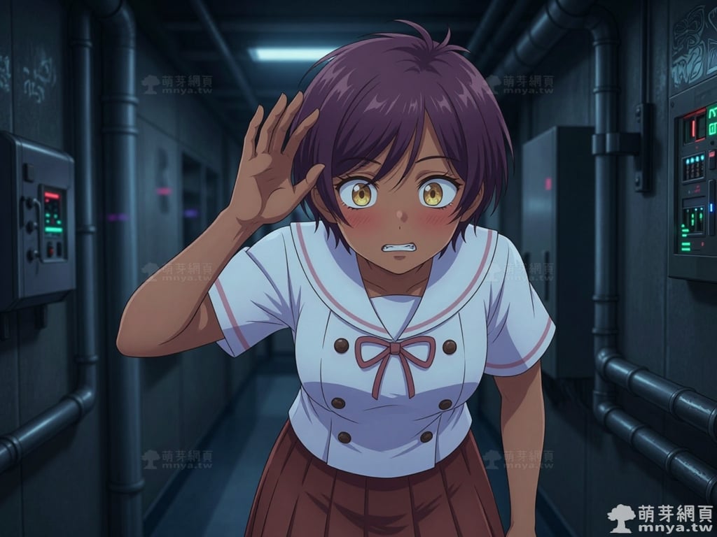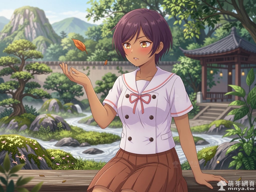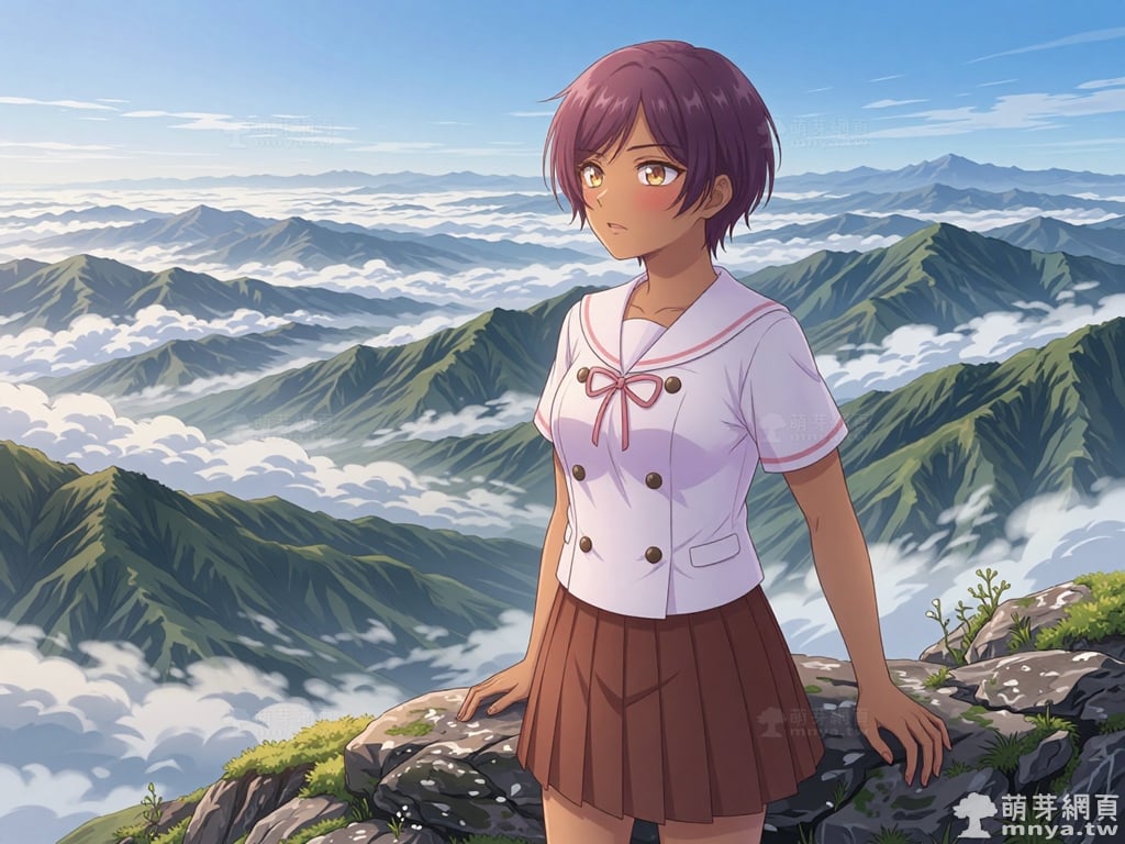 提詞文字:masterpiece, high quality, anime, (hinata_haru_z:2), dark skin, short hair, brown hair, yellow eyes, school uniform, sailor collar, white shirt, short sleeves, double-breasted, brown buttons, pink ribbon, bowtie, pleated skirt, brown skirt, high-waisted skirt, __1000promptspro__. <lora:hinata_haru_z_000001800>