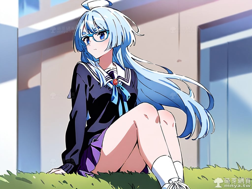 提詞文字:masterpiece, (best quality:1.3), Amazing, beautiful detailed eyes, 1girl, solo, finely detail,depth_of_field, extremely detailed CG unity 8k wallpaper, __posture__, (upper_body), (arms_behind_back:1.2), portrait, facing viewer, glasses, thighhighs, skirt, purple hair, blue eyes, white thighhighs, cardigan, plaid, plaid skirt, zettai ryouiki, short hair, drill hair, jacket, pleated skirt, miniskirt, bow, blue bow, bowtie, feet out of frame, cowboy shot, __looking__, __expression__, __background__. <lora:higuchi_seika:0.8:OUTALL>