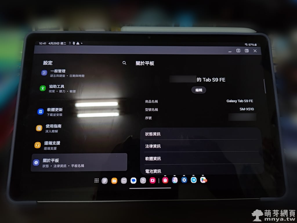 ▲ 裝置設定完成後進入系統,從「關於平板」中可看到型號 SM-X510 與系統版本資訊。