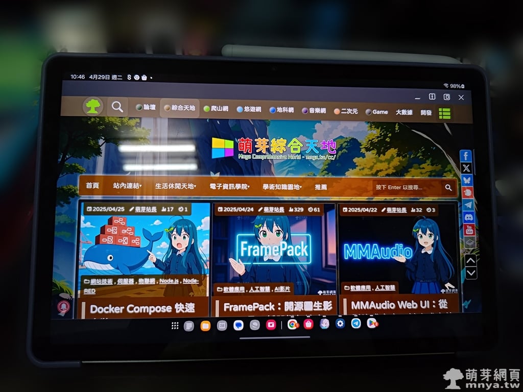 ▲ 成功開啟萌芽綜合天地進行瀏覽,螢幕顯示色彩鮮明,搭配寬螢幕比例閱讀體驗更舒適自然。總之終於有台平板能用啦!