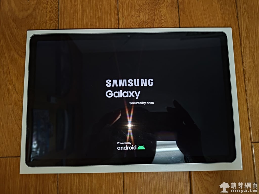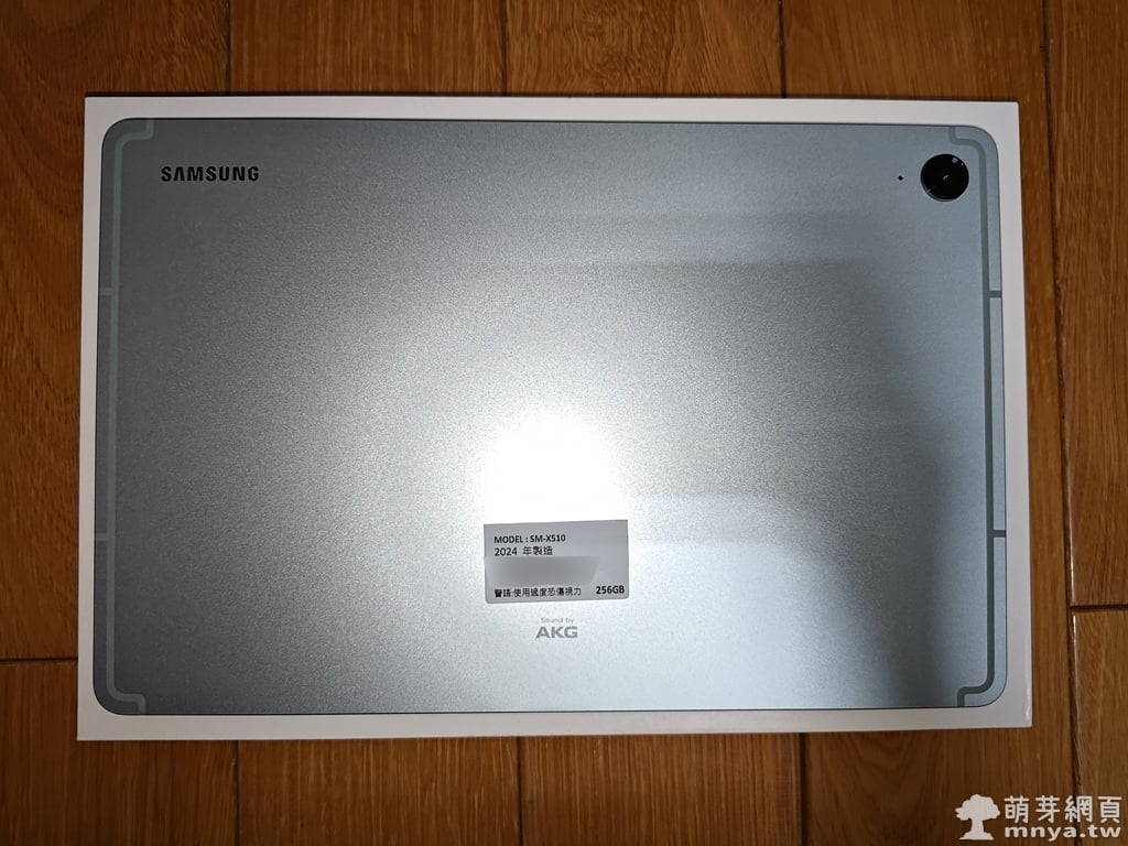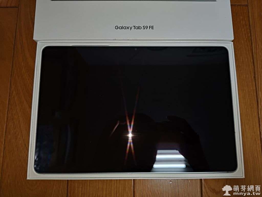 ▲ Galaxy Tab S9 FE 外盒設計簡約俐落,正面印有平板側視圖與產品名稱,開箱前就令人期待。