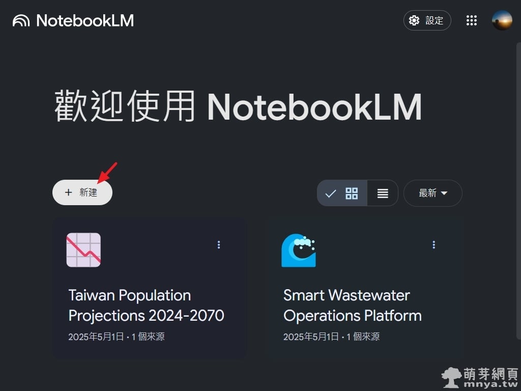 ▲ 開啟 NotebookLM 首頁後,點選左側的「+新建」按鈕,即可建立一個新的筆記本。每個筆記本都可以加入不同的資料來源,作為之後 AI 生成摘要與對話分析的依據,是整個流程的起點。底下也可以看到先前建立的筆記本。