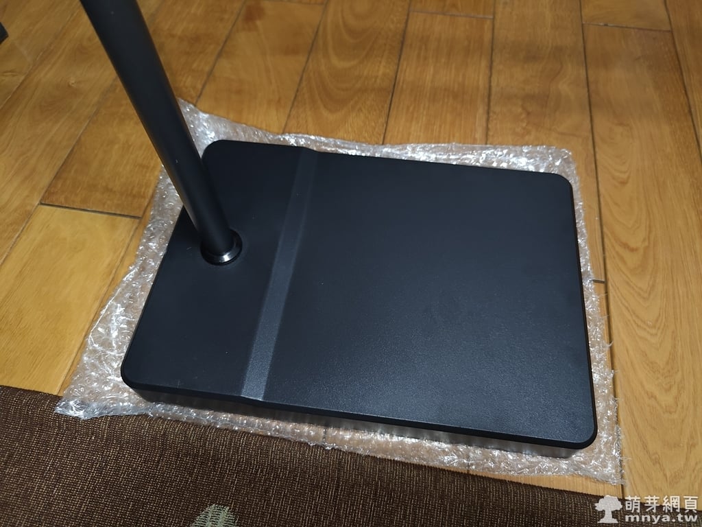 ▲ 拆開包裝後可以看到底座相當厚實沉重,是整體穩定度的關鍵部件,支架關節也非常有份量感。