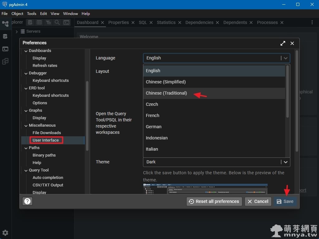 pgAdmin 4:將介面切換為正體中文(繁體中文)