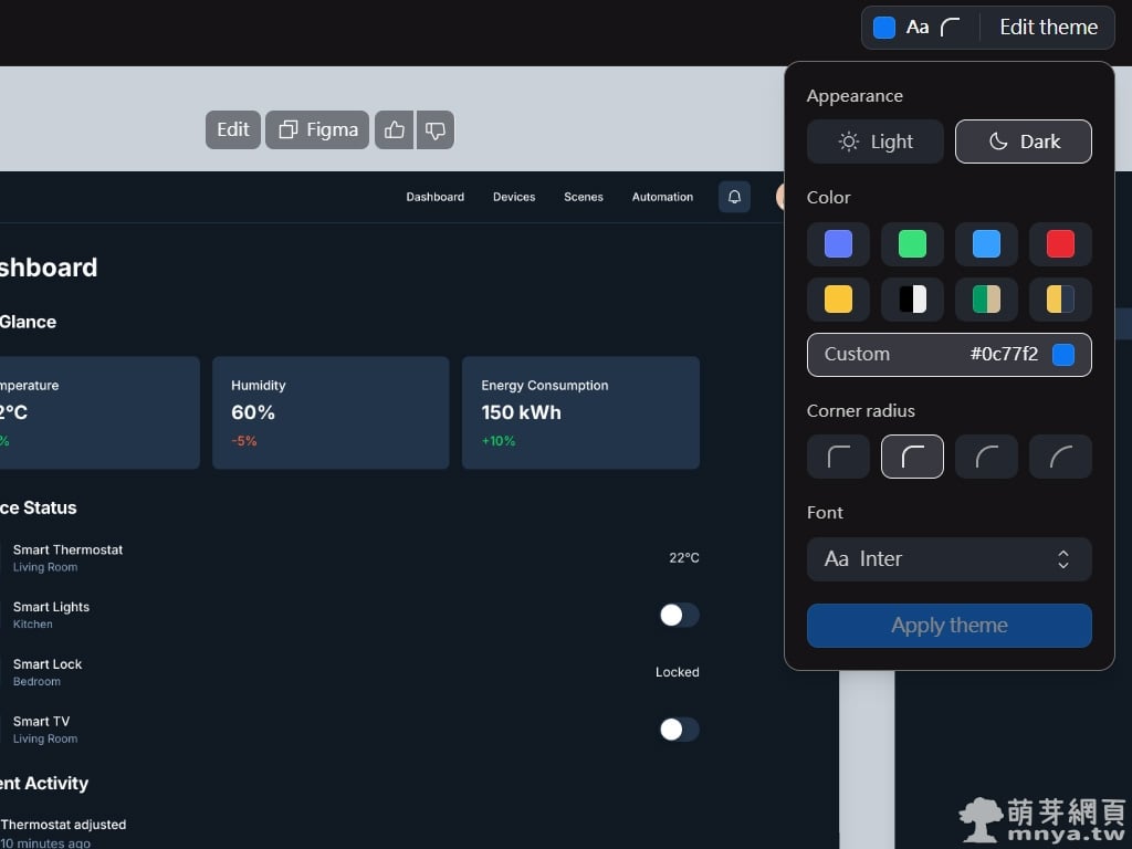 ▲ Standard Mode 支援詳細主題、配色、字體、圓角等參數設定,可針對每個細節進行微調,完成度更高。目前兩種模式皆可免費使用,Standard Mode 特別適合有 Figma 工作流需求的設計者,實驗性工具值得嘗鮮體驗。