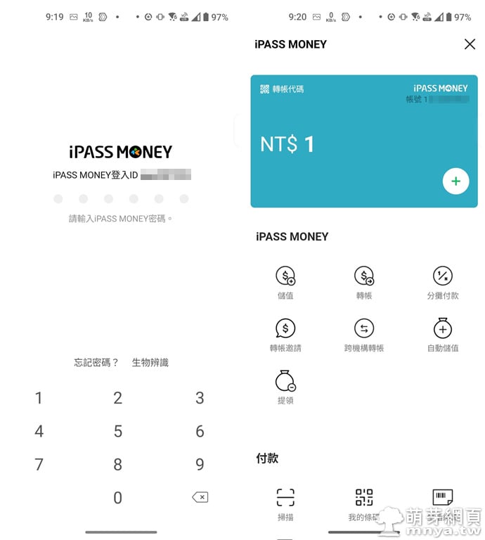 ▲ 左:進入 iPASS MONEY 後,輸入帳號與密碼即可登入,這裡可以選擇密碼或生物辨識。右:登入後會看到帳戶餘額與各項功能,如儲值、轉帳、分攤付款、跨機構轉帳等,未來都要改用專屬 App 操作。
