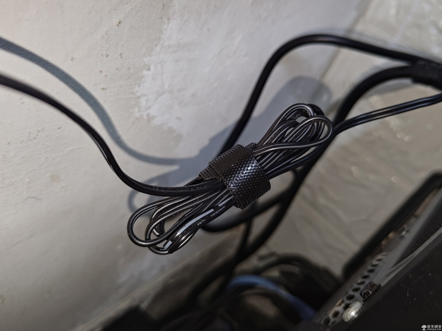▲ 實際使用魔鬼沾束帶整理電腦後方的電線,可以看出收納效果非常明顯,線材不再雜亂打結,桌面整潔又有條理。束帶黏貼力道適中,拆裝都很方便。