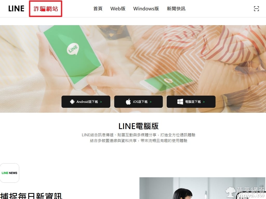 ▲ 仿冒網站的外觀幾乎與官方一樣。這類網站會提供假的下載連結,下載後可能中毒或被竊取個資,務必小心辨認,切勿隨意安裝非官方來源的程式。