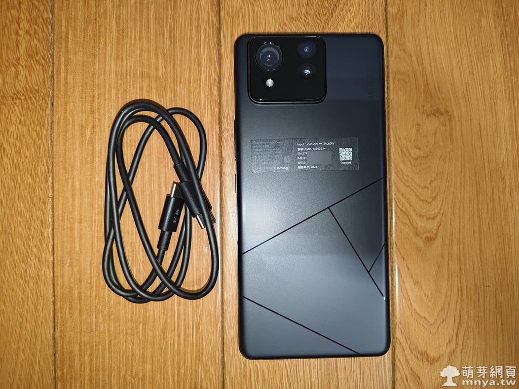 ▲ Zenfone 11 Ultra 採用 USB-C to USB-C 線材,傳輸與充電效率都能符合旗艦需求。手機正面搭載 6.78 吋 AMOLED 螢幕,開機前可見極窄邊框設計,整體視覺效果相當沉浸。