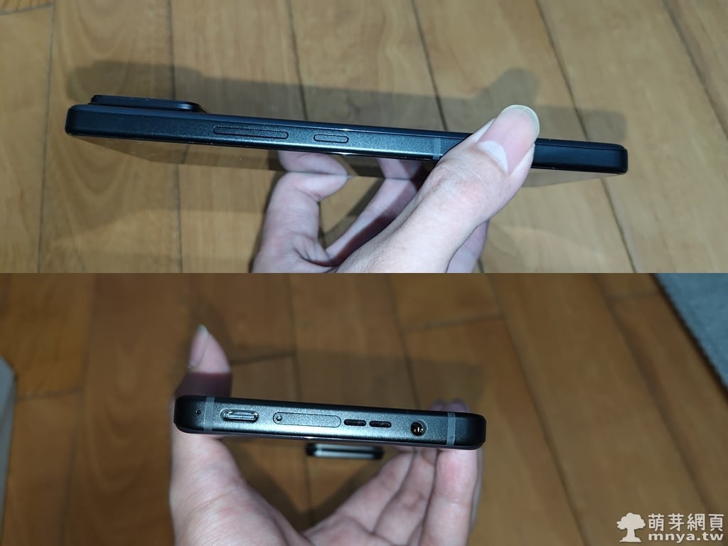 ▲ 機身側邊與底部分別配置音量鍵、電源鍵、SIM 卡槽、喇叭孔與 3.5mm 耳機孔,功能完整保留。