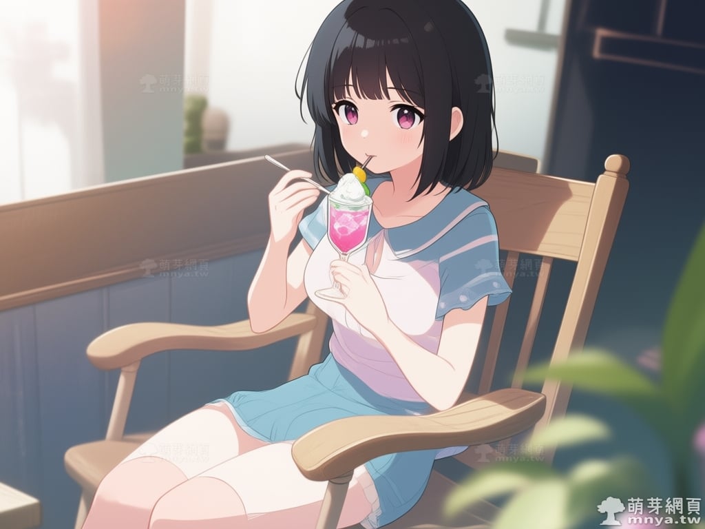 1. 動漫少女坐在椅子上,享受著美味的冰品