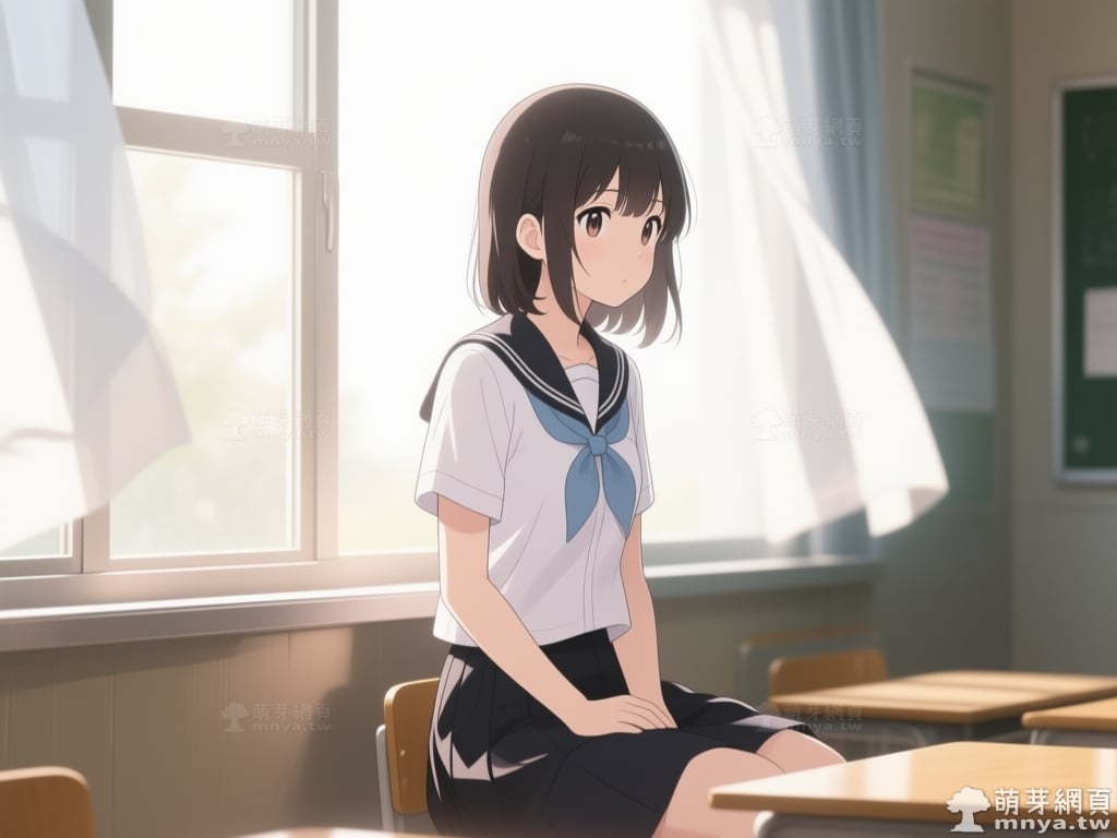 7. 動漫少女穿著校服,坐在教室窗邊,被午後陽光灑落