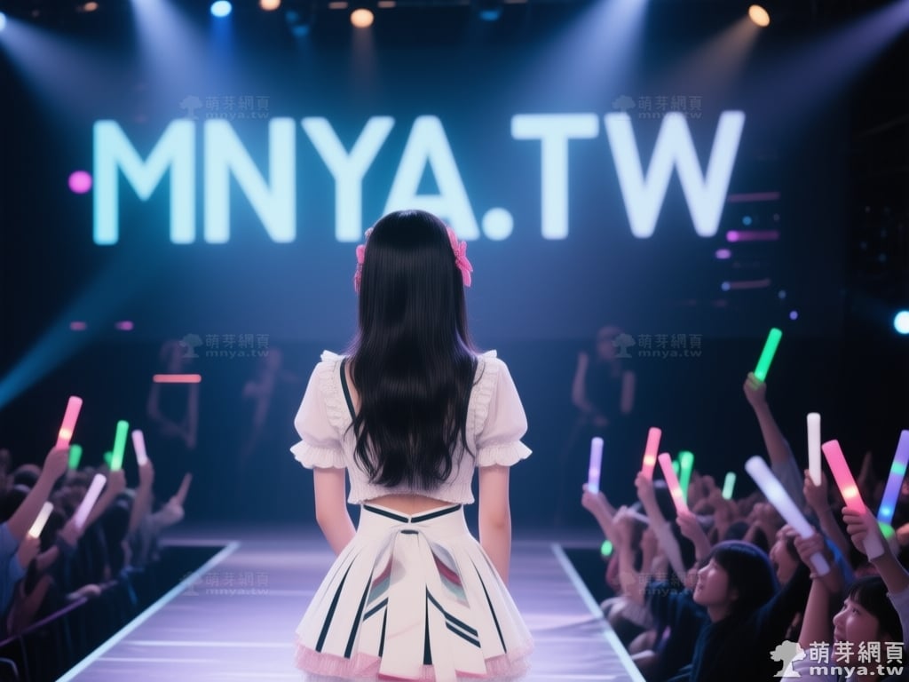 6. 演唱會偶像風:「寫實風格,舞台上的日系偶像少女背後 LED 螢幕清楚打出『MNYA.TW』,觀眾舉著螢光棒熱情應援。」