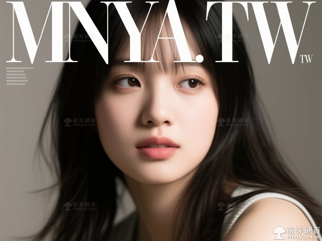 8. 雜誌封面風:「寫實風格,日系少女拍攝時尚雜誌封面,雜誌標題設計上印有『MNYA.TW』,整體氛圍高級而專業。」