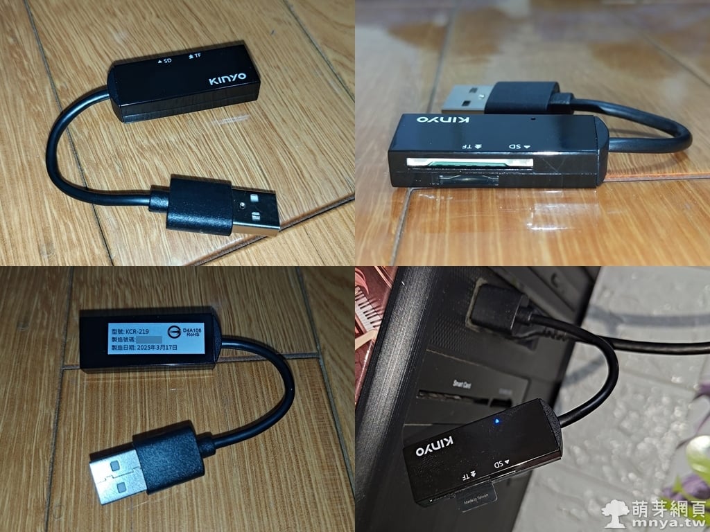 實際拆開後,讀卡機本體重量非常輕,線材長度較短,插在桌機後方會比較不便。黑色亮面外殼搭配上清楚的 SD 與 TF 標示,但插卡時還是會搞錯方向,TF 卡槽不太好插入跟拔出,是一大缺點。接上電腦後會亮起 LED 燈,紅燈顯示供電,藍燈則代表正在讀取,這點在使用時特別直觀。測試過幾張不同品牌的 SD 與 MicroSD 卡,都能讀取到,對於常常需要在筆電與桌機間交換資料的人來說,確實帶來方便性。