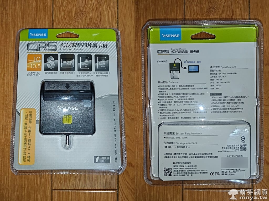 最近剛換新的桌上型電腦,因為機殼的關係沒有加裝內置讀卡機組,像是報稅、自然人憑證登入、健保資料查詢、網路 ATM 轉帳等都離不開晶片讀卡機。於是趁著逛實體店面時,順手帶了 Esense CR5 回家,算是補齊必備工具,售價新台幣 249 元。這款讀卡機的售價平實,包裝走簡潔實用路線,一眼就能知道支援哪些用途,對需要多種證件讀取的人來說算是挺方便的選擇。