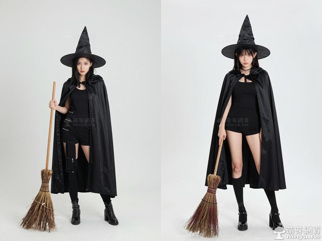 尖頂帽與黑色斗篷,經典的女巫神秘魔法造型。