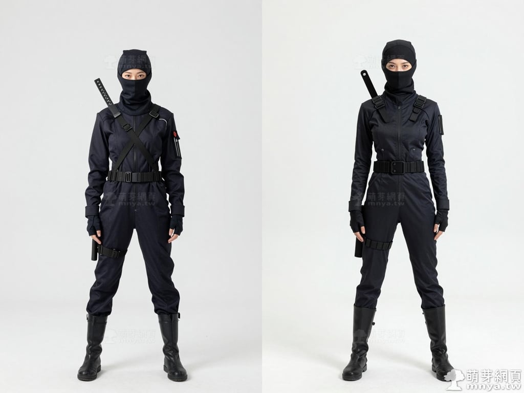 緊身忍者裝與面罩、手裡劍,充滿敏捷與隱秘的忍者風範。