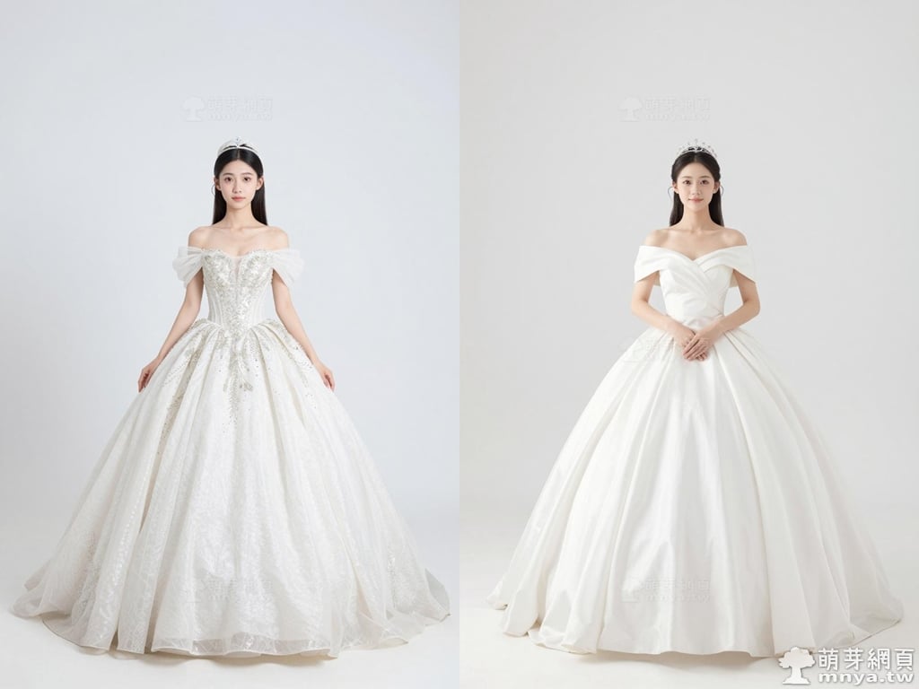 蓬鬆的公主長禮服與皇冠,宛如童話中的高貴公主。