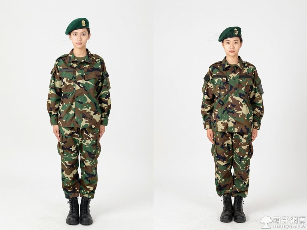 迷彩軍裝與貝雷帽,展現英挺的軍人氣勢。