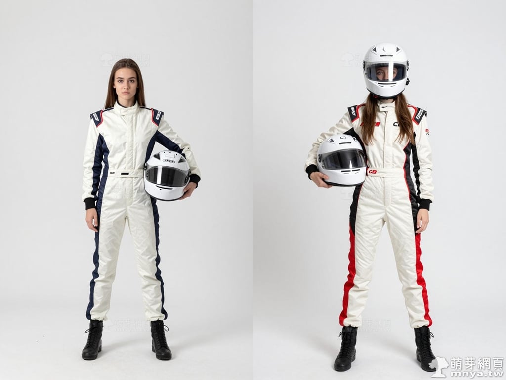 緊身賽車服與頭盔,展現速度與激情的賽道風采。