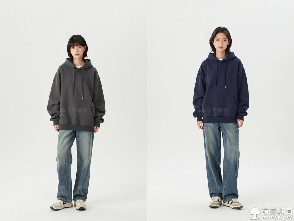 舒適的連帽衫搭配牛仔褲與運動鞋,展現日常休閒的青春活力。