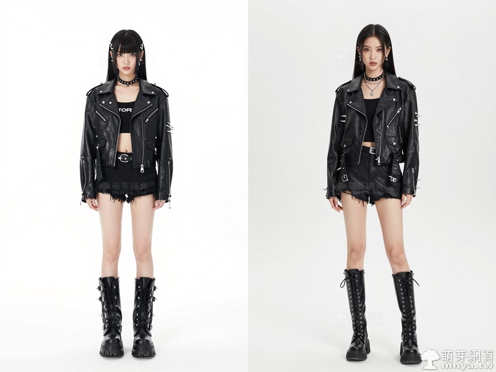 皮革外套與鉚釘配件,反叛個性的搖滾風格。