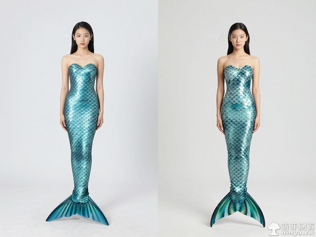 閃耀鱗片與魚尾的禮服,夢幻的海底美人魚形象。
