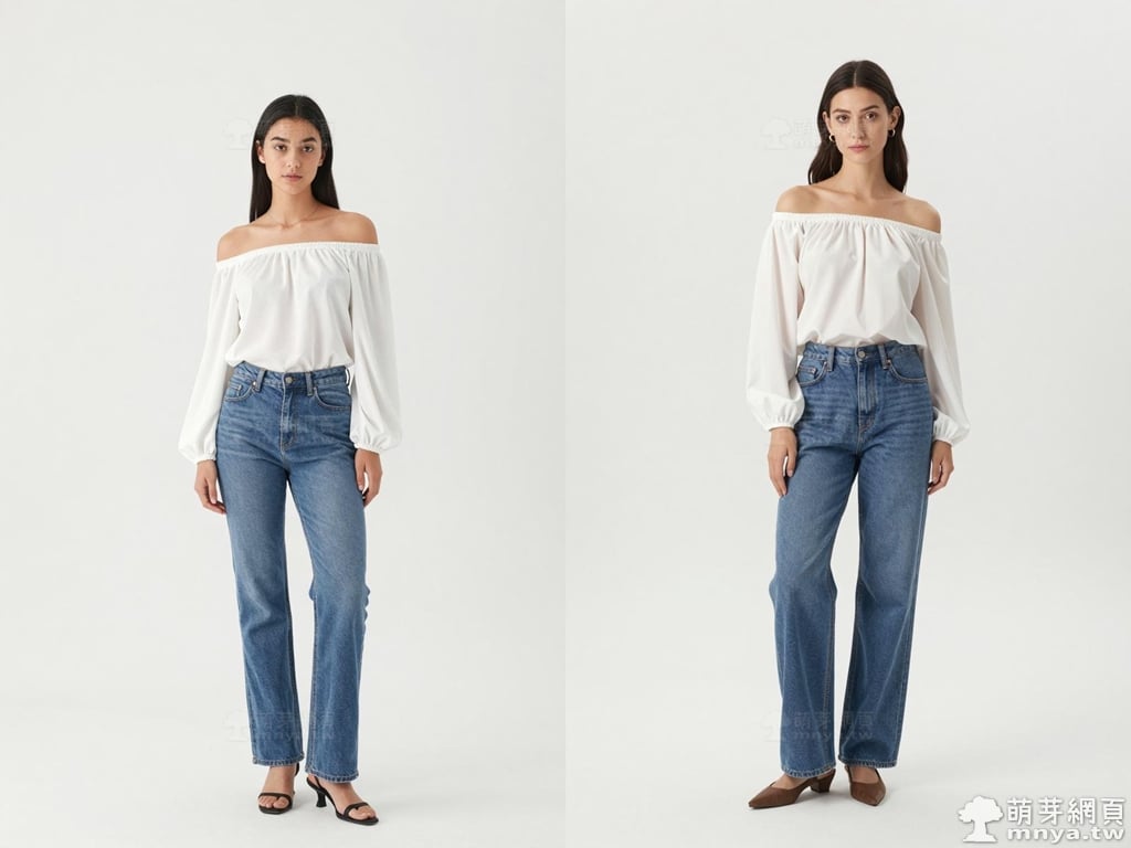 露肩襯衫搭配牛仔褲,隨性又帶點女人味。