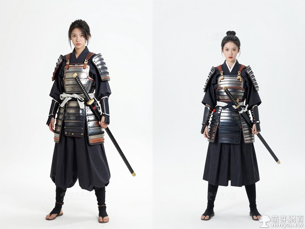 傳統武士鎧甲與日本刀,威嚴的東方戰士風範。