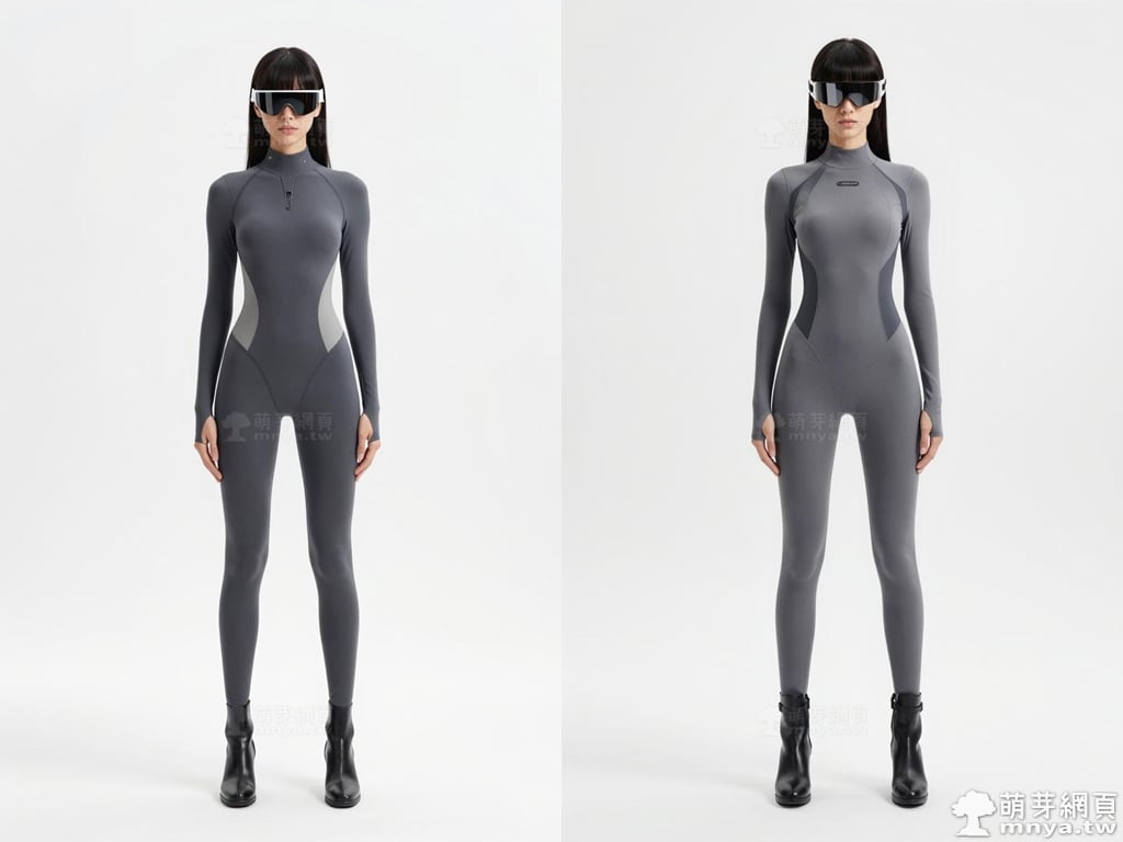 高科技緊身衣與護目鏡,前衛的未來戰士造型。