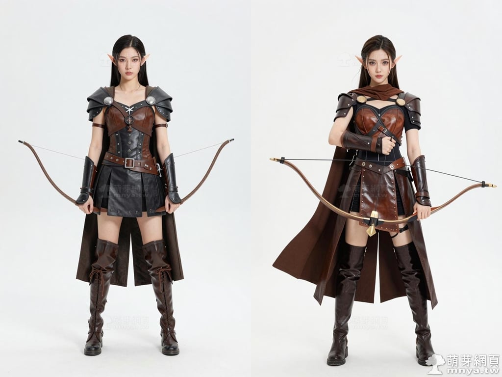 皮革護甲與斗篷的精靈弓箭手裝束,充滿神秘的森林冒險氣息。