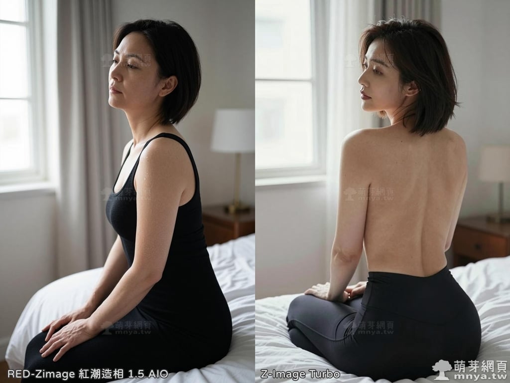相較之下,RED-Zimage 紅潮造相 1.5 AIO 則屬於建立在 Z-Image 系列基礎之上的「人像導向微調模型」。其訓練目標並非追求通用題材的最大覆蓋,而是將算力與資料集中投入在人物結構、膚質層次、五官比例、光影反應與攝影語言等面向。這類微調模型往往在特定主題上能展現出更強烈的風格取向與即用性,尤其在人像攝影、商業視覺與偏寫實的女性角色生成上,常被視為比原版模型更「好出圖」的選擇。