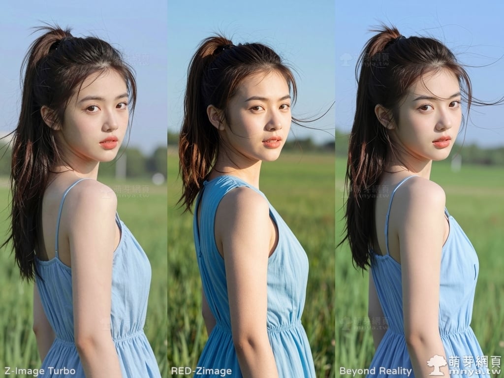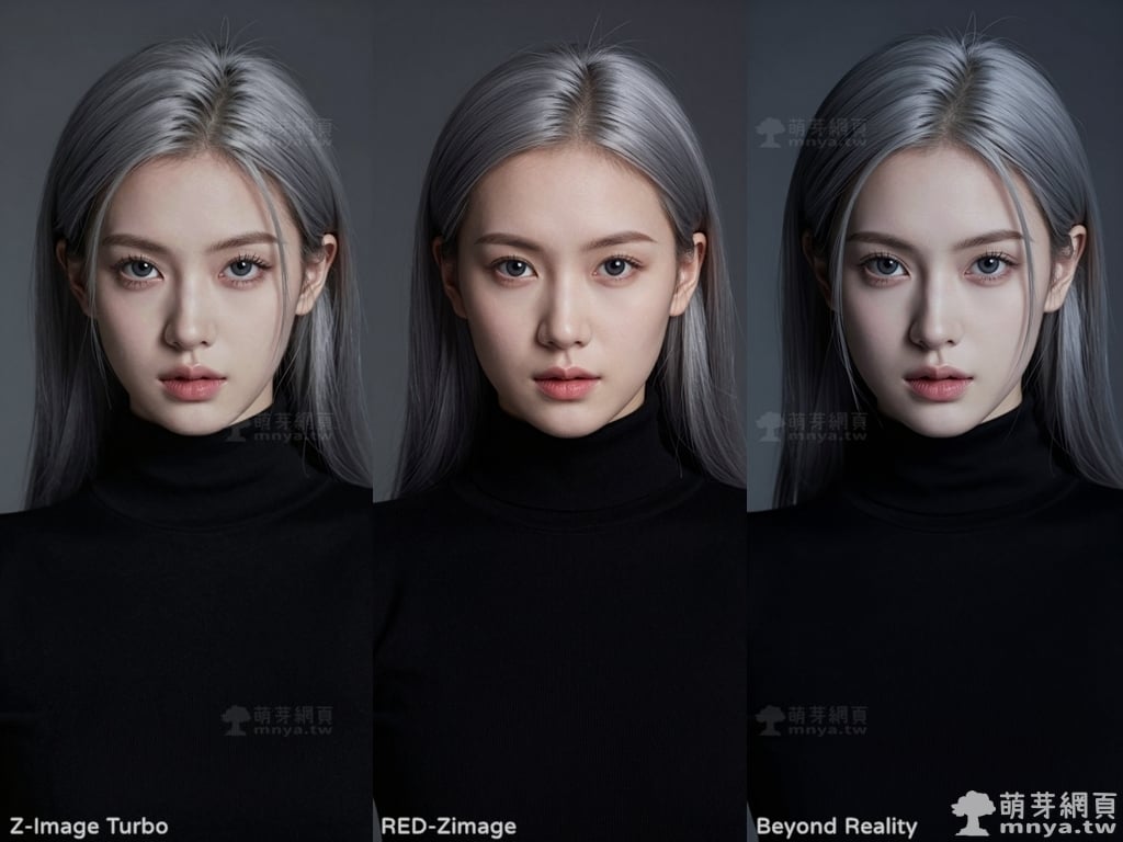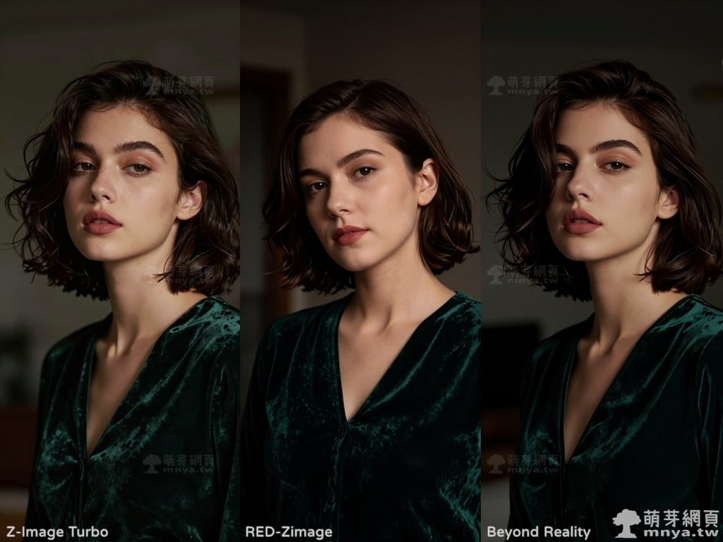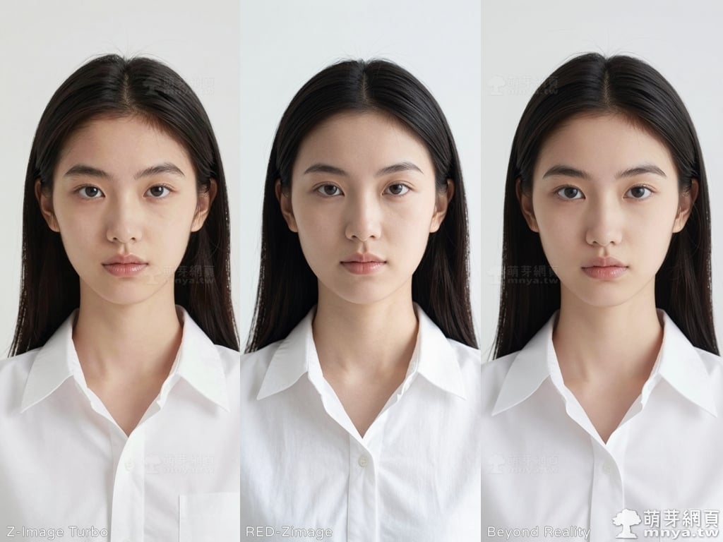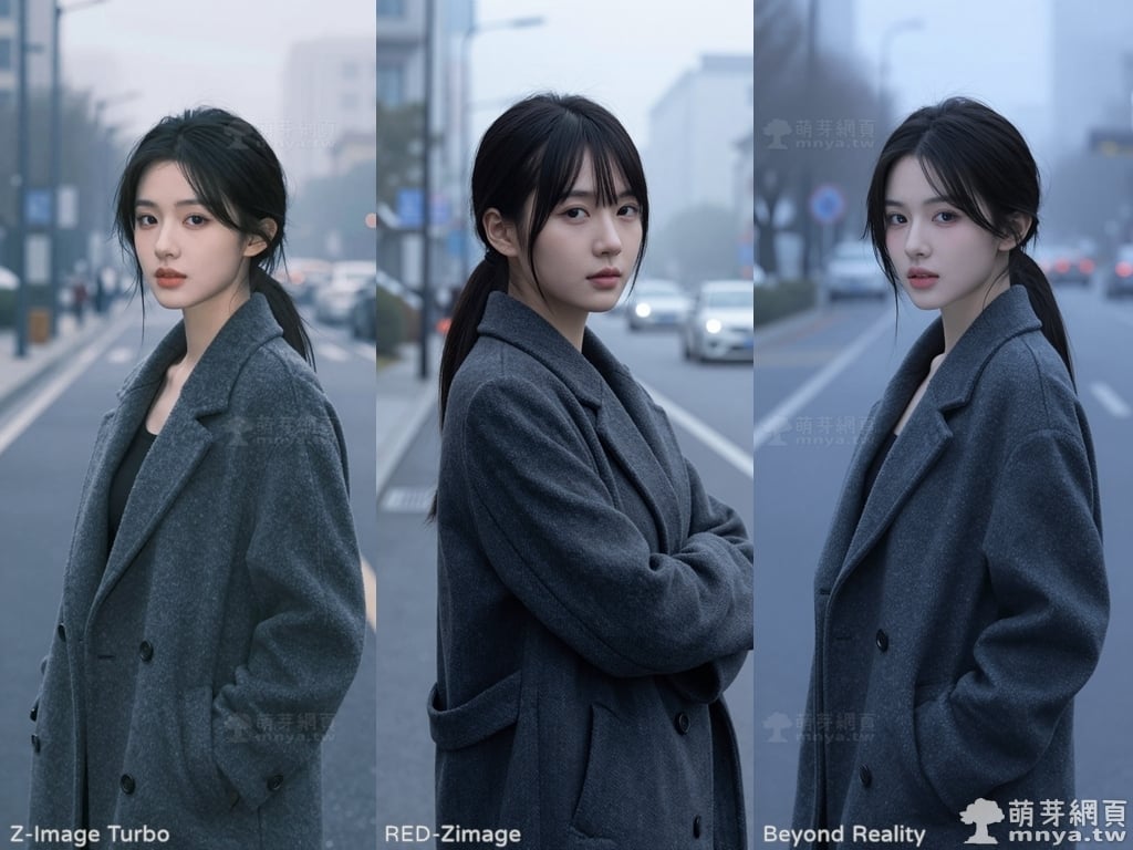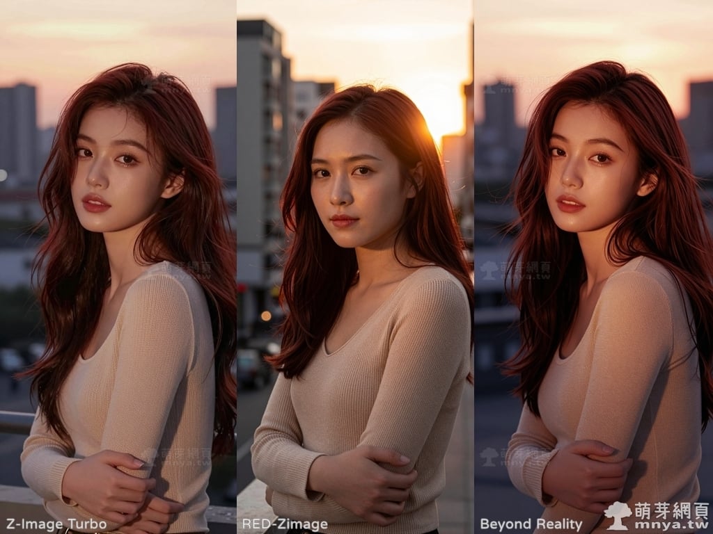 在此基礎之上,社群也陸續出現多個以 Z-Image 為底進行再訓練的人像微調模型,嘗試將生成重心從「通用穩定」推向「風格與審美取向」。本次比較中納入的兩個模型,分別是 RED-Zimage 紅潮造相 1.5 AIO 與 Beyond Reality Z-Image 1.0 。兩者雖同樣以人像資料為主要訓練方向,但在審美策略與影像語言上,卻呈現出截然不同的取向:前者則將重心集中於人物結構、膚質層次、五官比例與商業攝影語境下的即用性;後者更偏向補強高頻細節、膠片感與氛圍層次。