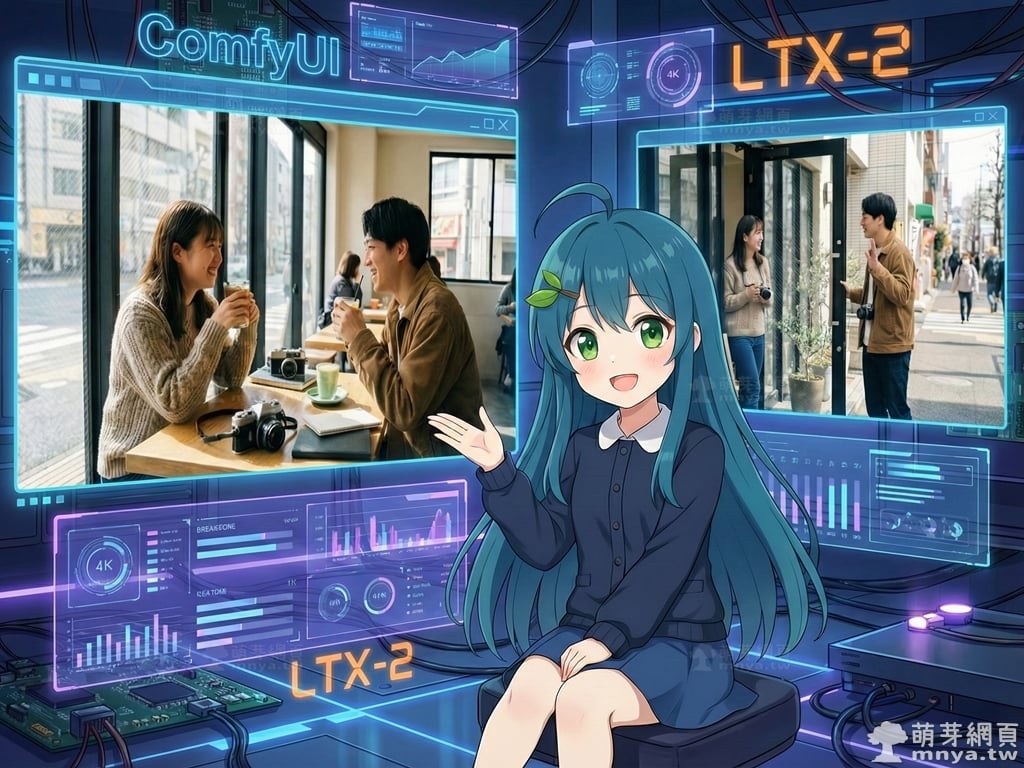 本次實測我們將聚焦於 LTX-2 的「圖生影(Image to Video, I2V)」功能。我們以一對喜愛攝影的日本學生在咖啡廳聚會為背景,展示如何將靜止的照片轉化為富有情感、帶有自然對話的有聲短片。從室內的輕鬆談笑到戶外的道別,LTX-2 將帶領我們見證 AI 敘事的新高度。
